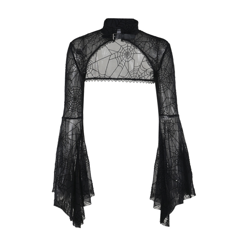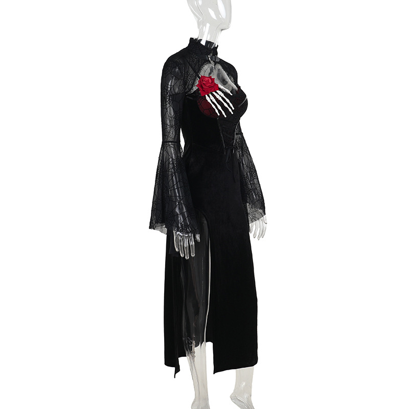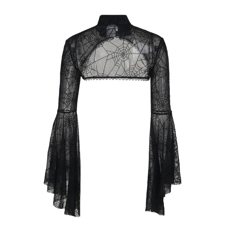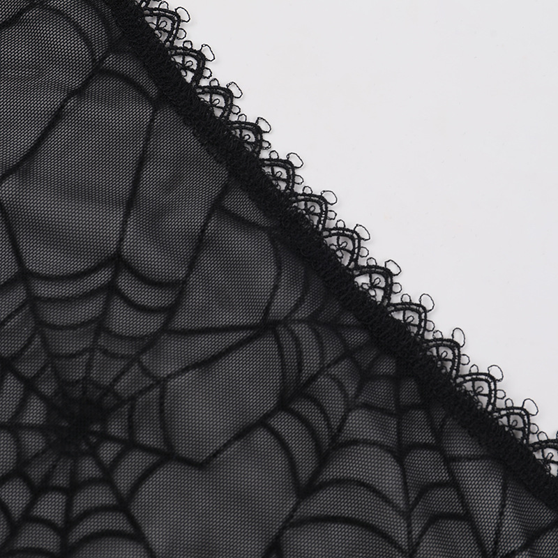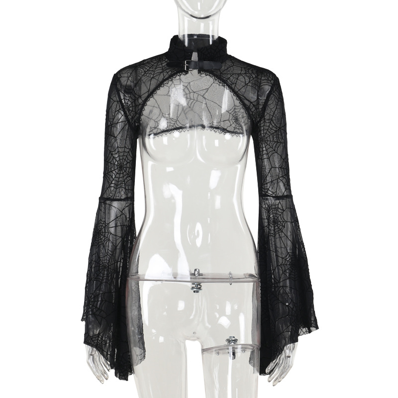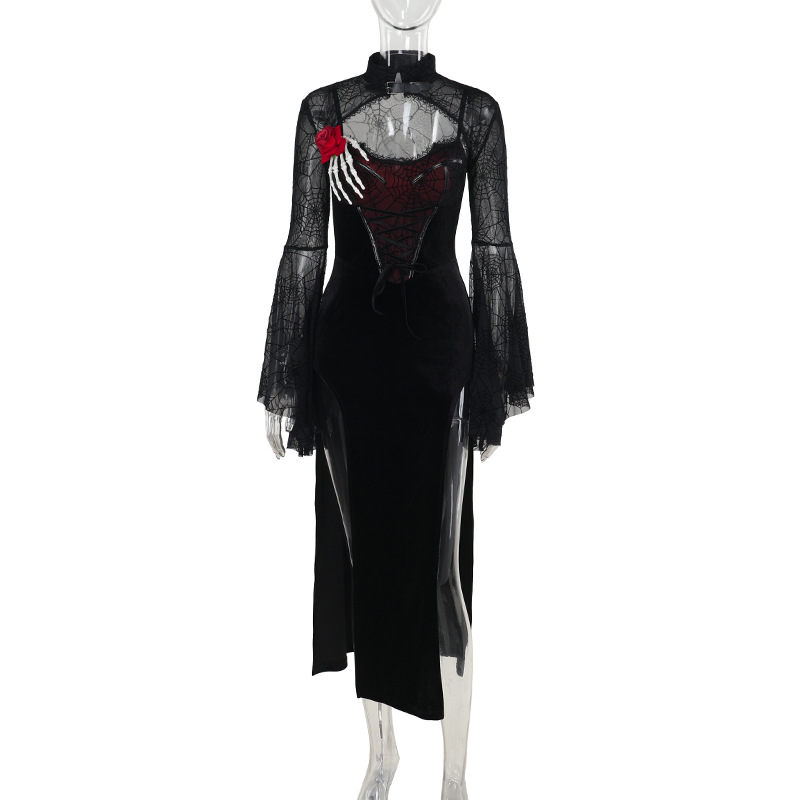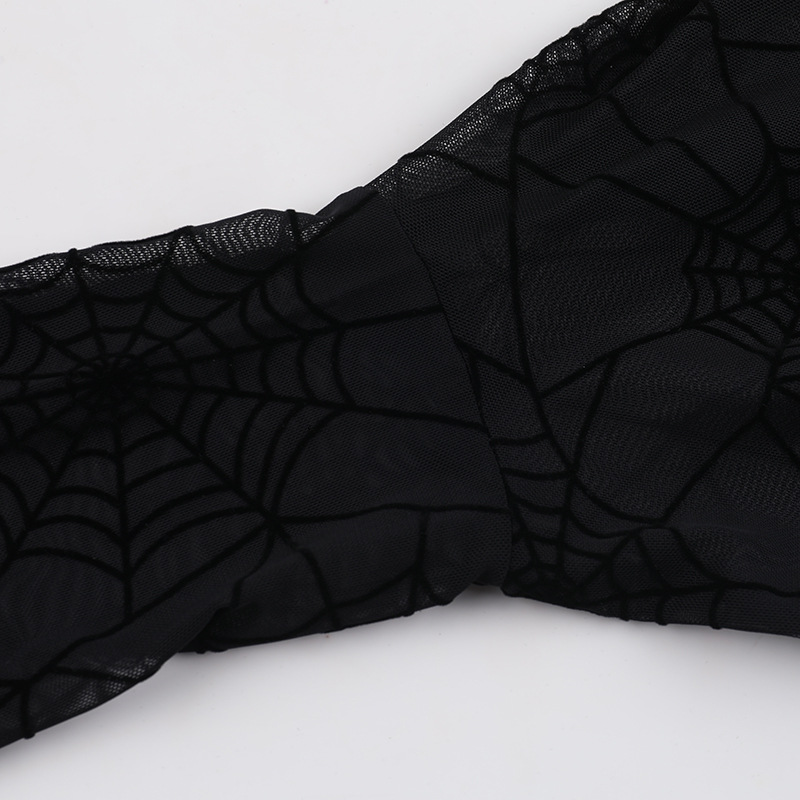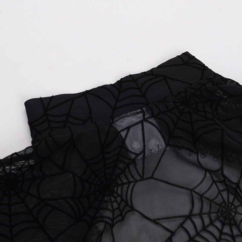Women Clothing Autumn Halloween Dark Slightly Transparent Spider Web Smock Top Gothic Two Piece Dress Set
