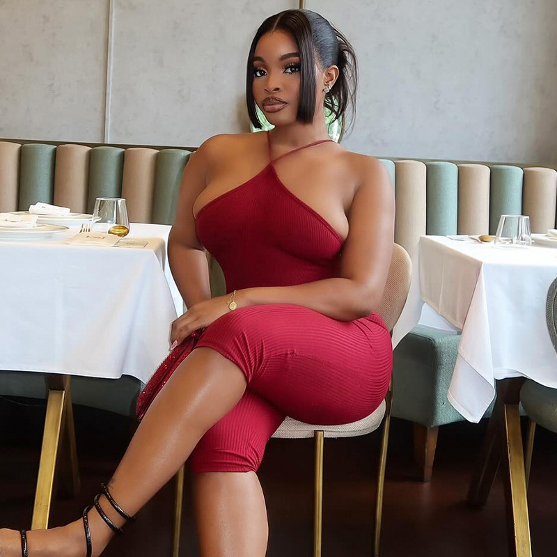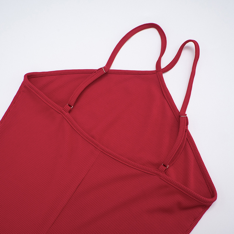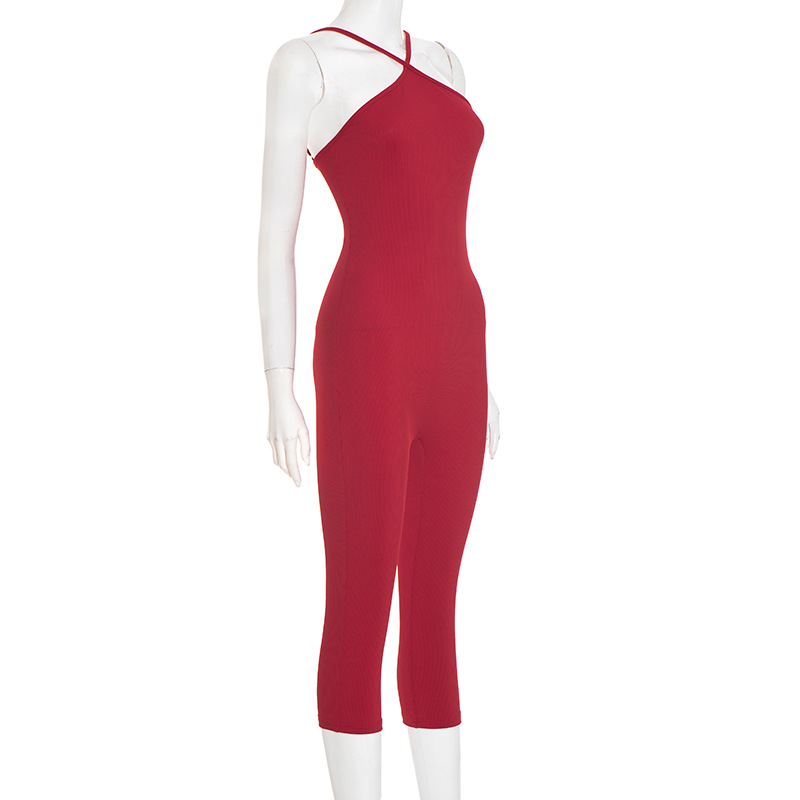 Women Clothing Autumn Solid Color Casual Slim Fit Halter Spaghetti Straps Backless Sleeveless Jumpsuit