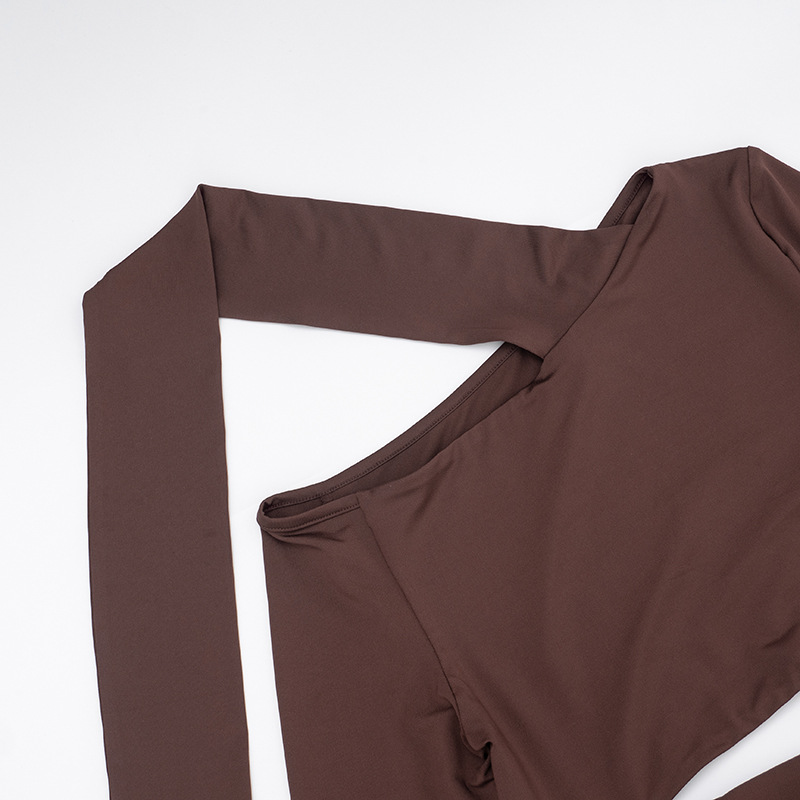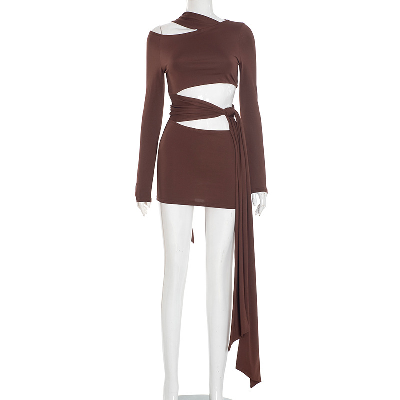 Women Clothing Autumn Strap off the Shoulder Hollow Out Cutout Irregular Asymmetric Dress