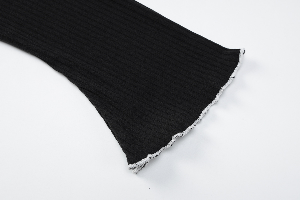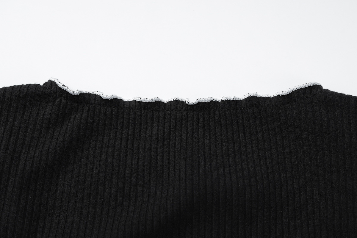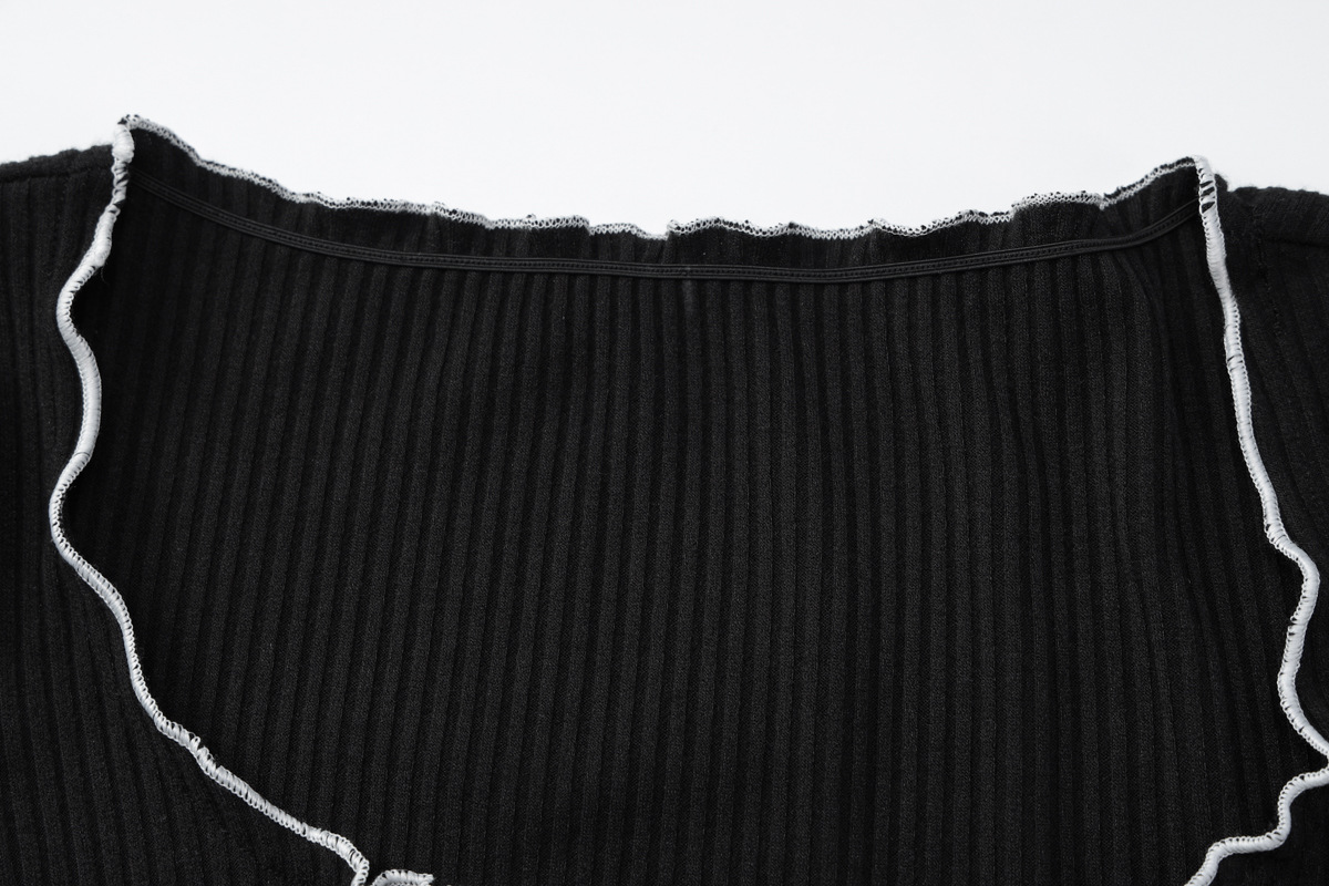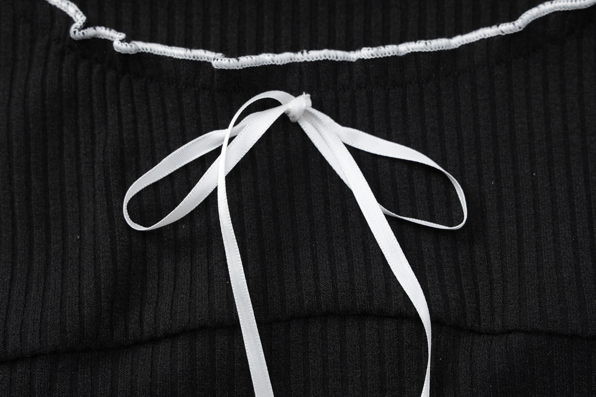 Women Clothing Autumn U-Shaped Collar Contrast Color Wooden Ear Waist Slimming Dress