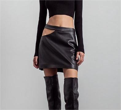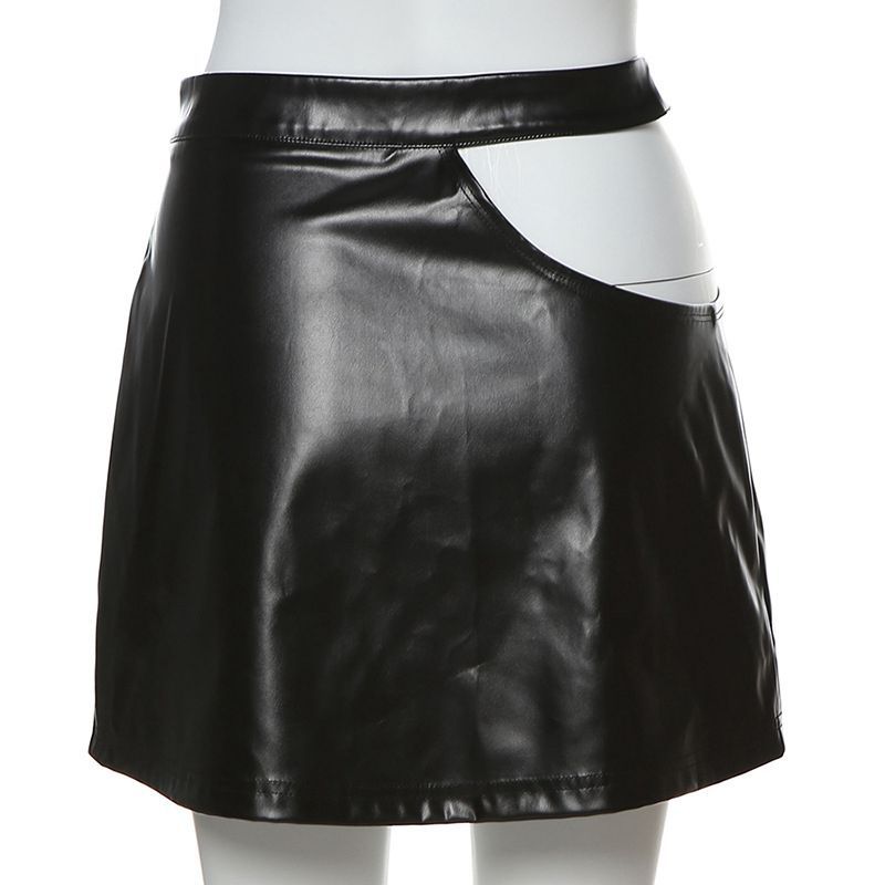 Women Clothing Autumn Winter Hollowed out High Waist Faux Leather Sheath Women