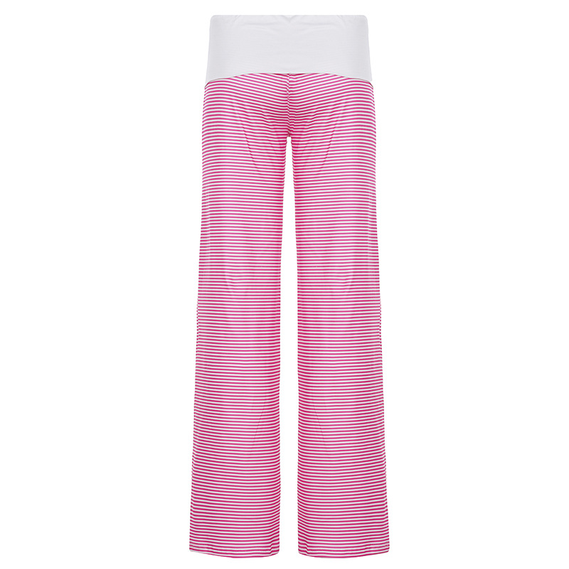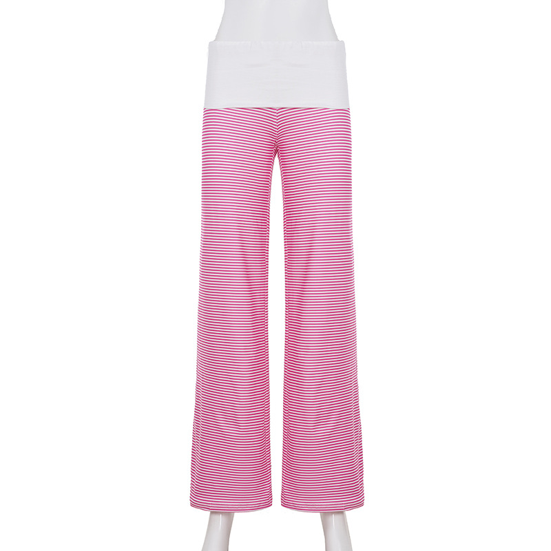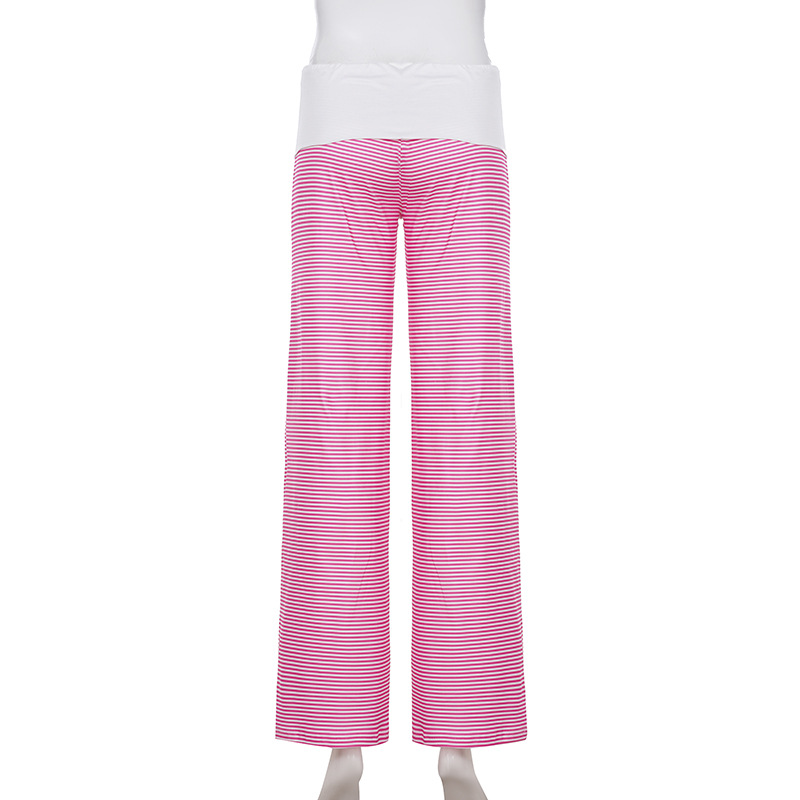 Women Clothing Casual Pajamas Trousers Turn Waist Contrast Color Stripes Knitted Trousers All Match Smooth Straight Leg Trousers