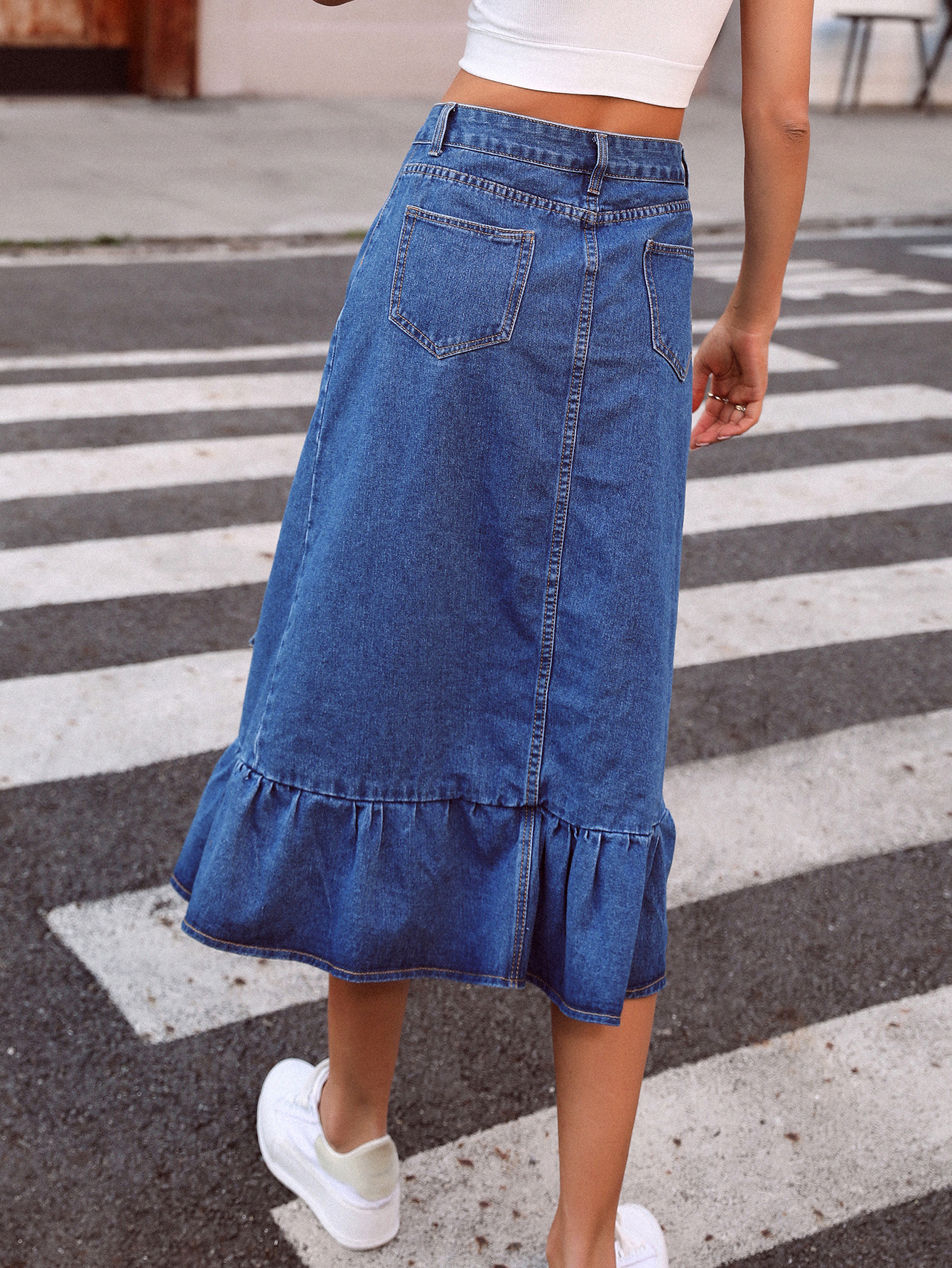 Women Clothing Casual Trend High Waist Slimming All Matching Denim Skirt