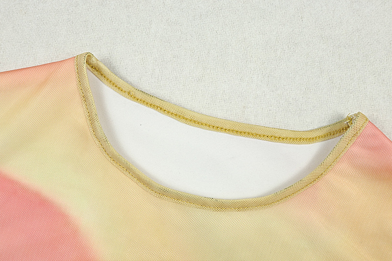 Women Clothing Color Matching Slimming Printed Hip round Neck Long Sleeve Pleated Party Dress