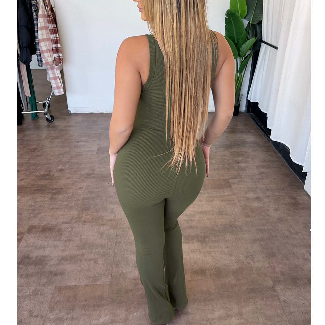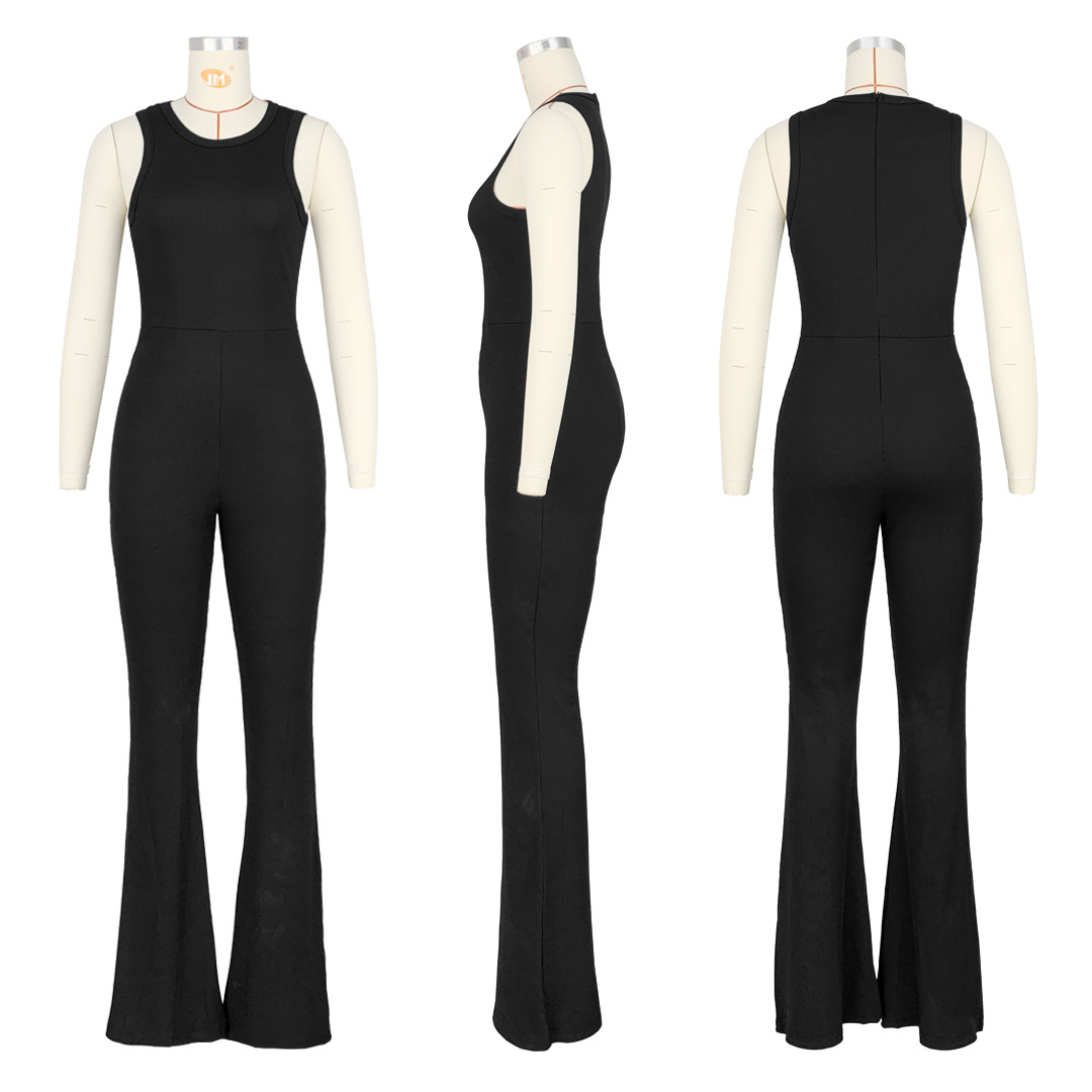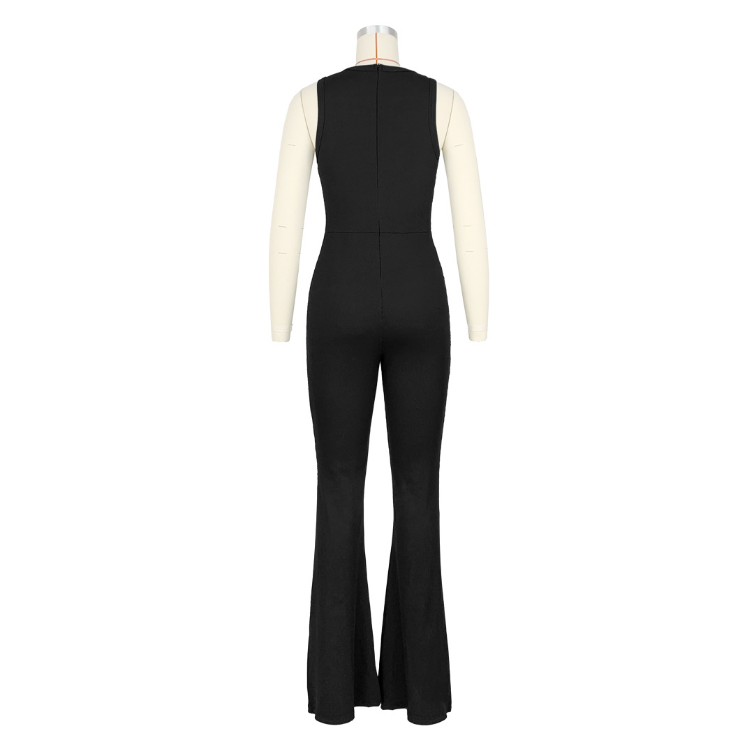 Women Clothing Comfortable Sleeveless Zipper Slim Fit High Waist Micro Pull Jumpsuit