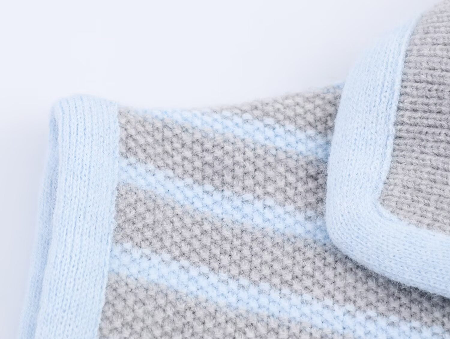 Women Clothing Fall Fresh Age Reducing Stripe Decoration Collared Short Vest