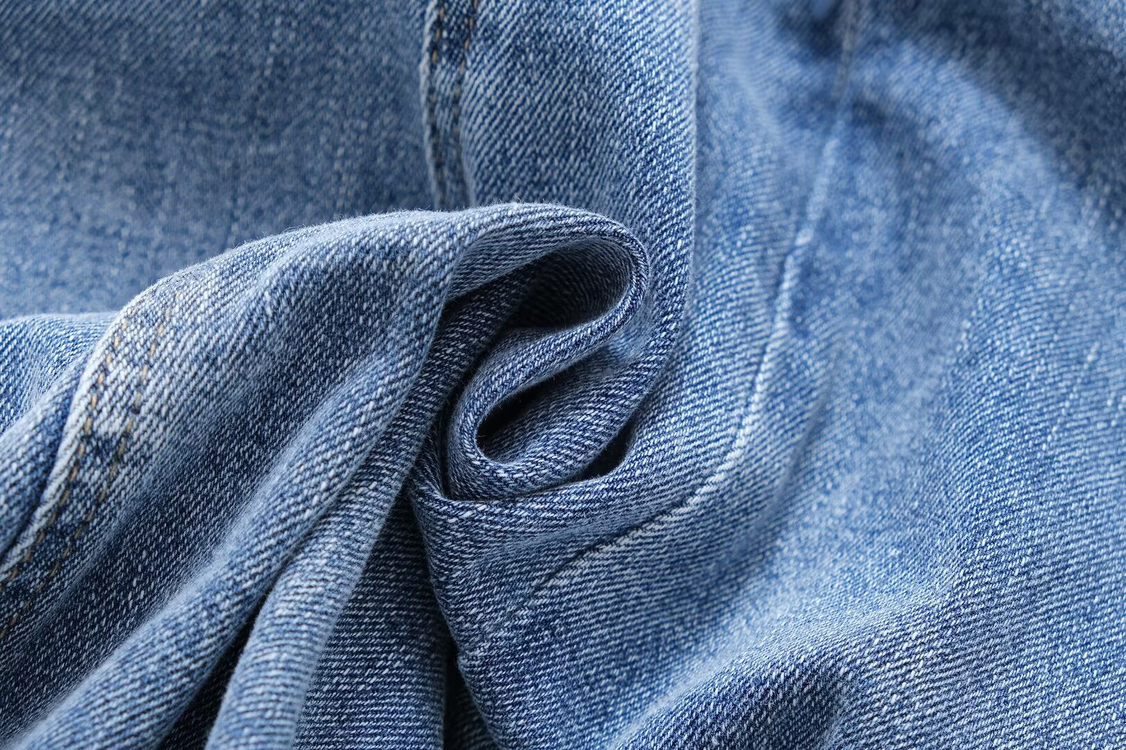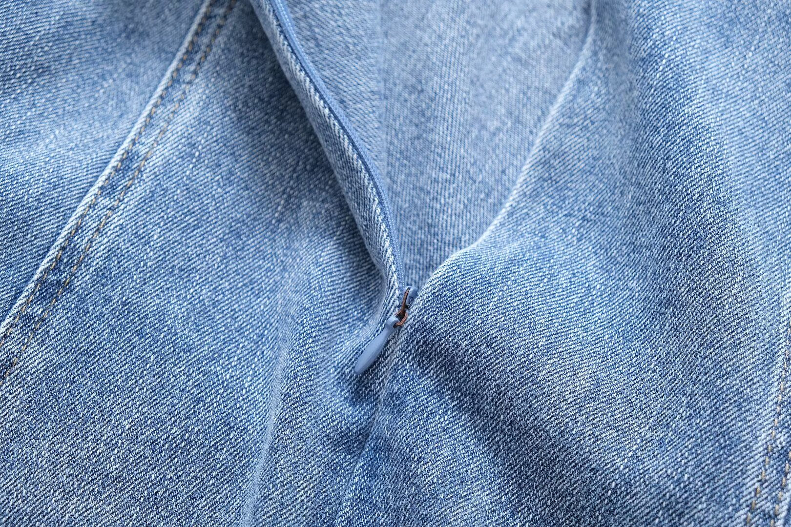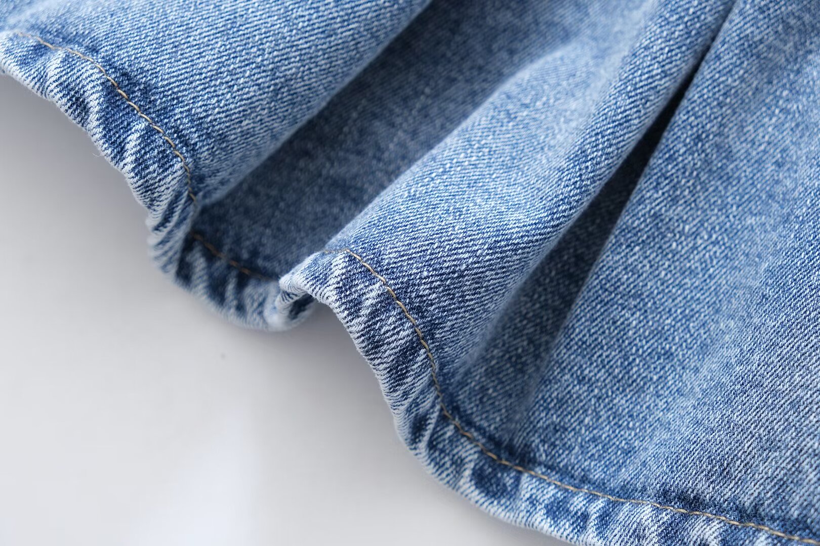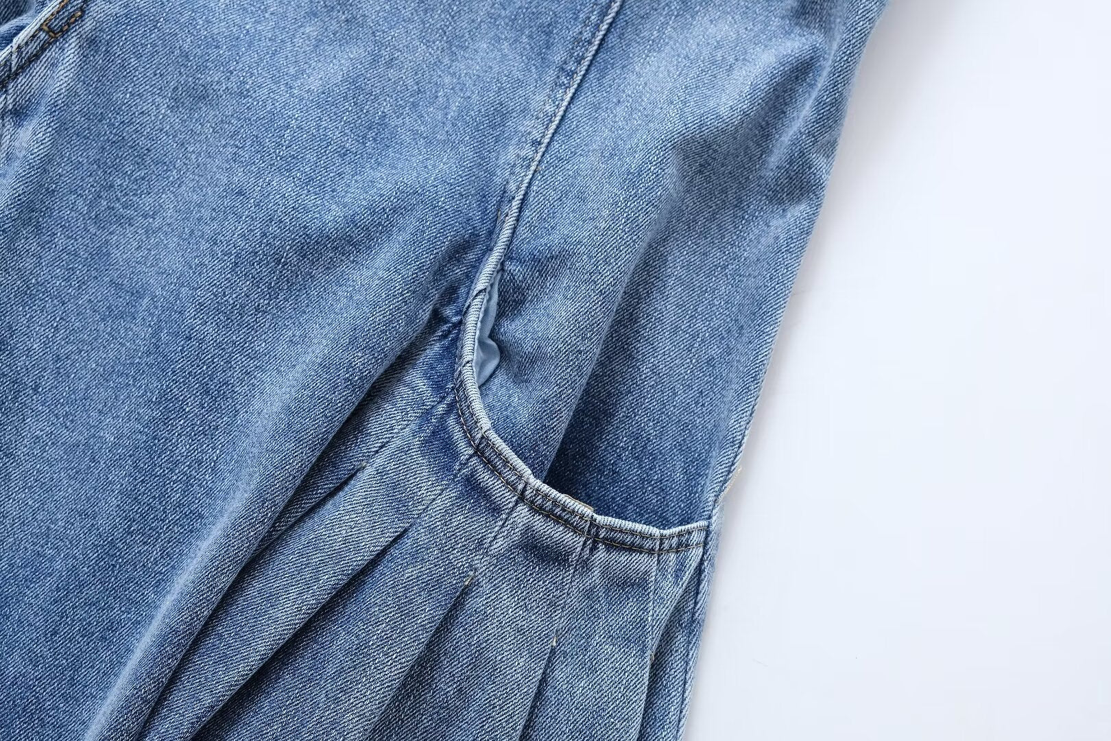 Women Clothing French Casual Pleated Washed Denim Dress Chic