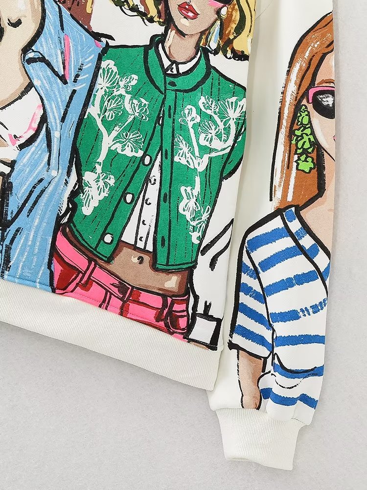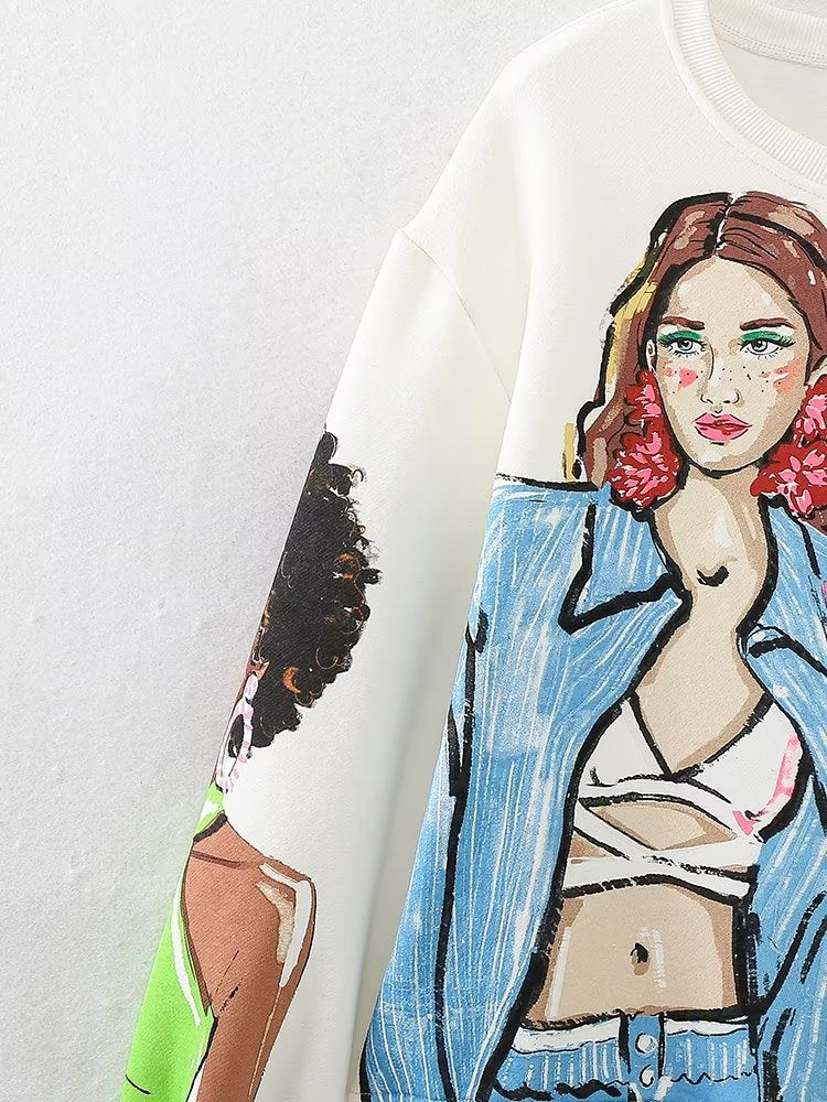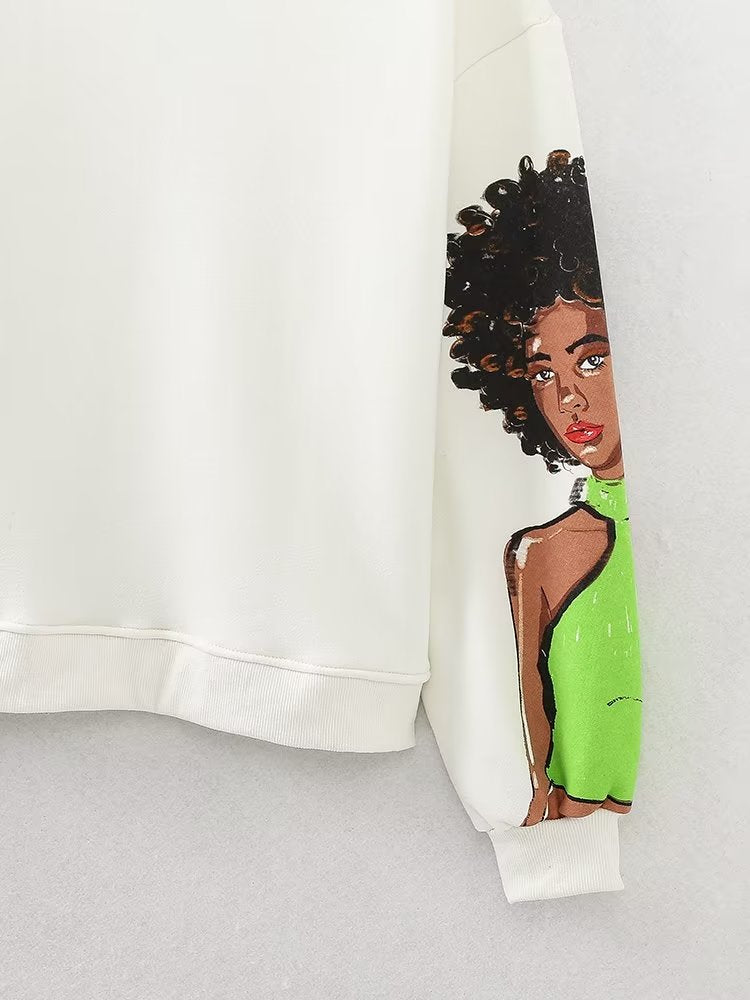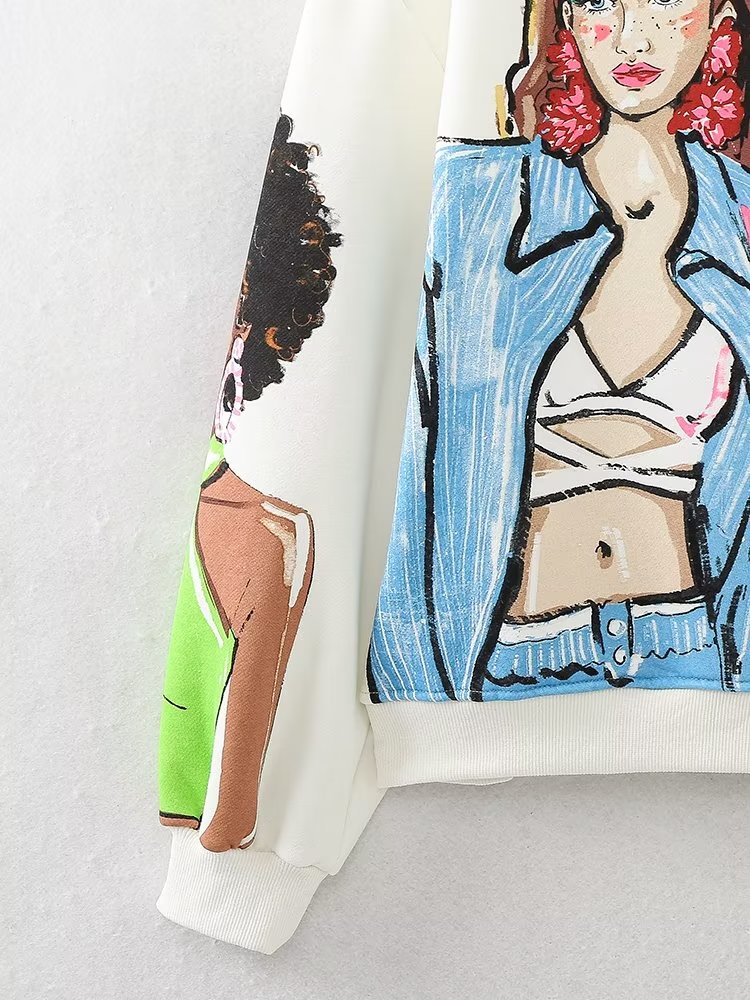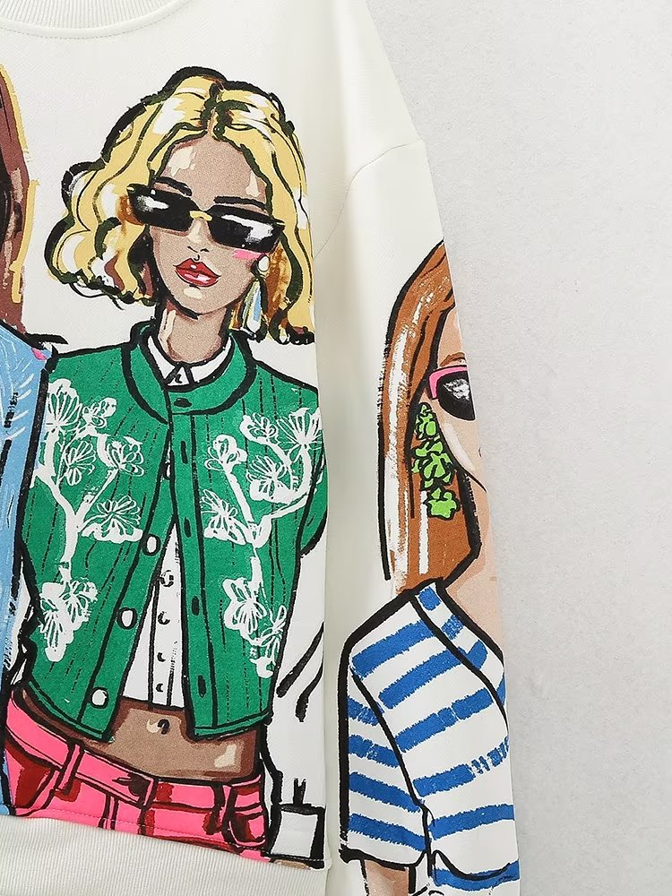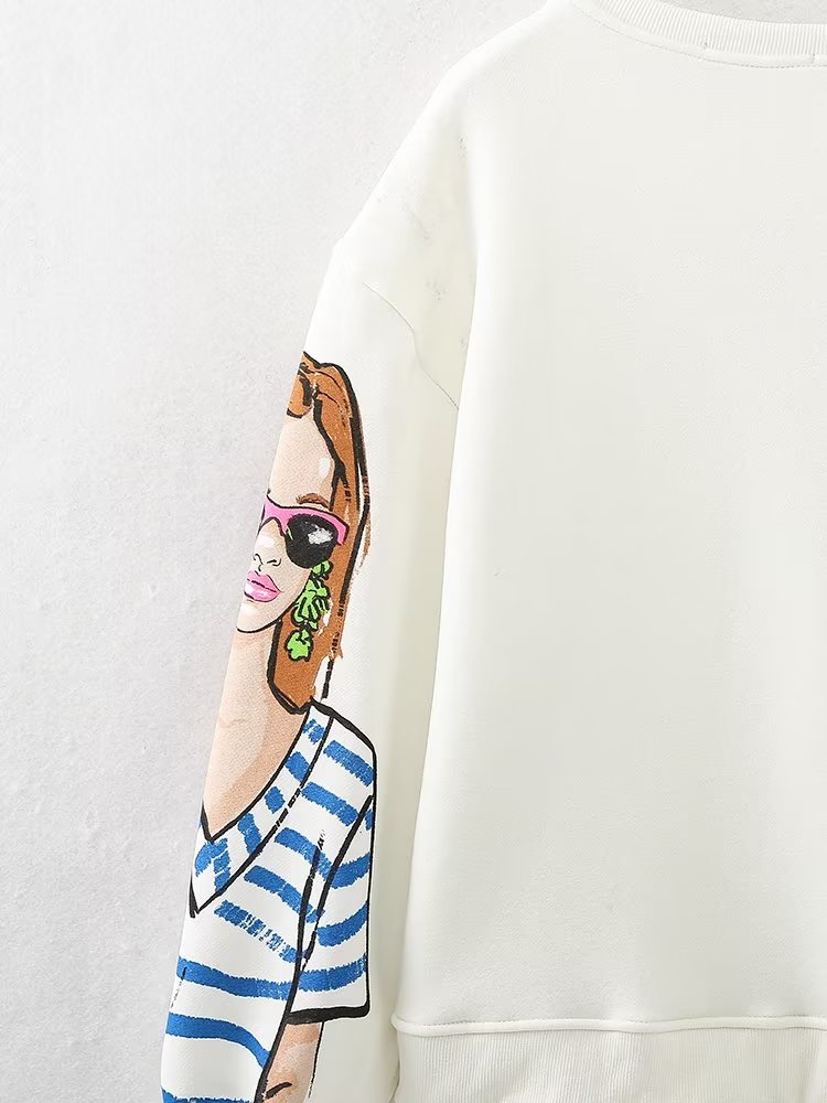 Women Clothing French Girl Printed Crew Neck Sweatshirt