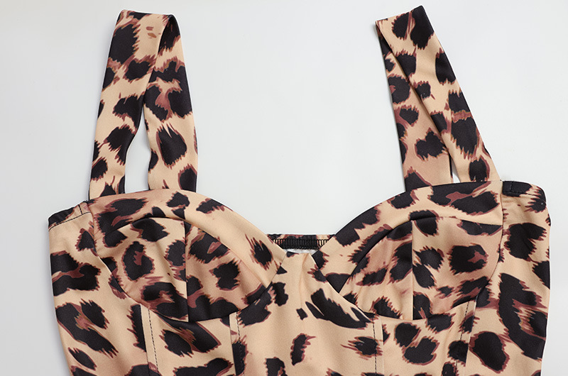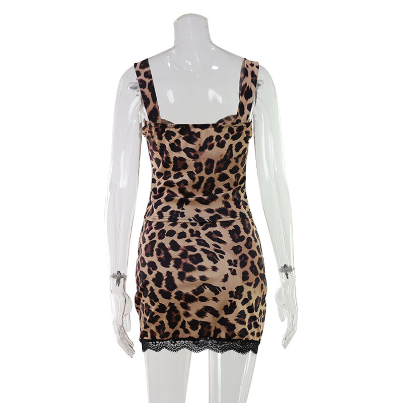 Women Clothing in Leopard Print Printed Sexy Sleeveless Vest Hip Skirt Pure Sexy Two Piece Sets
