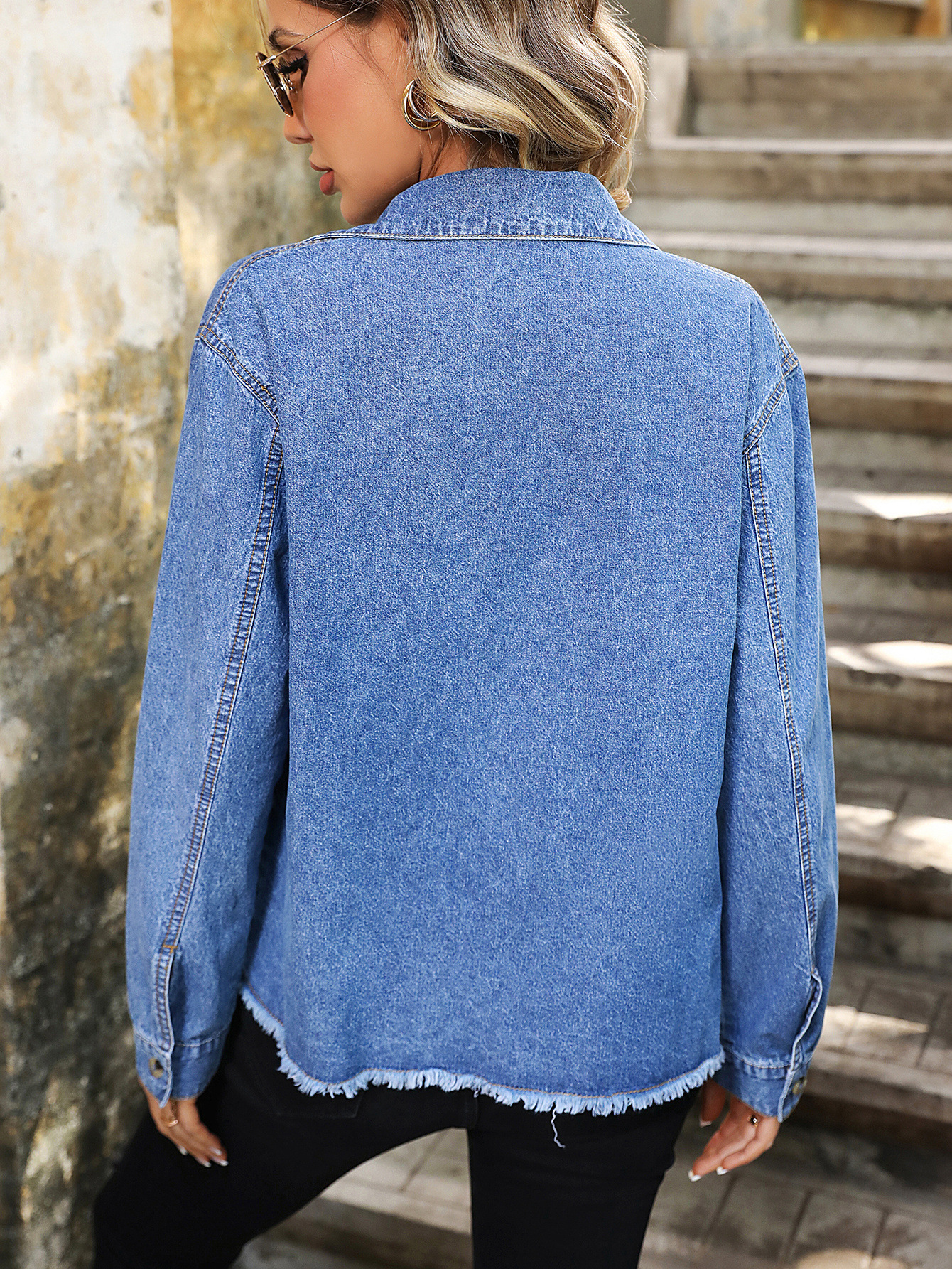 Women Clothing Loose Washed Blue Denim Shirt Spring