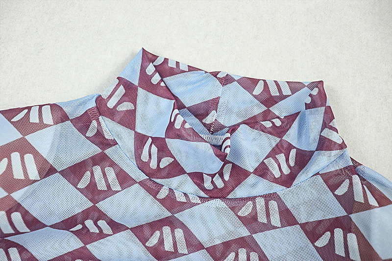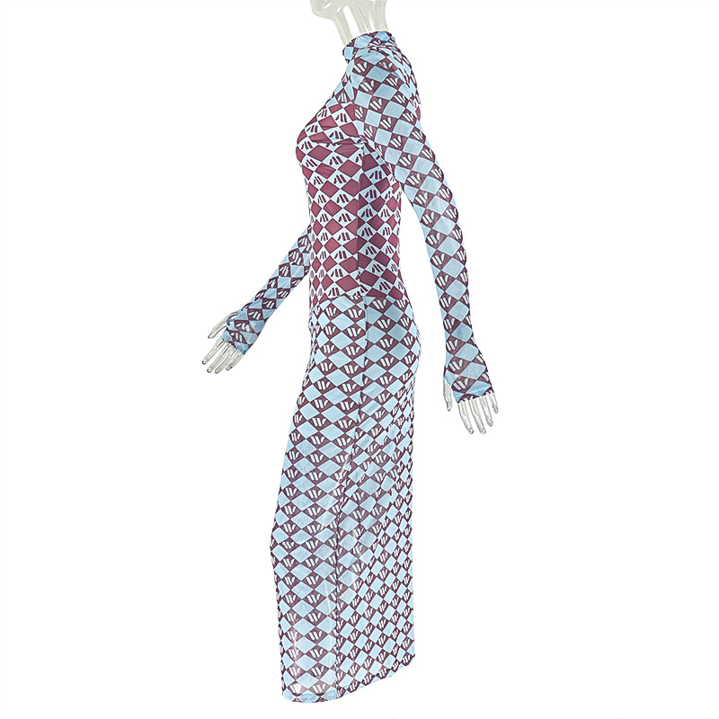 Women Clothing Micro Transparent Printing Slim One Step Hip Turtleneck Long Sleeve Dress