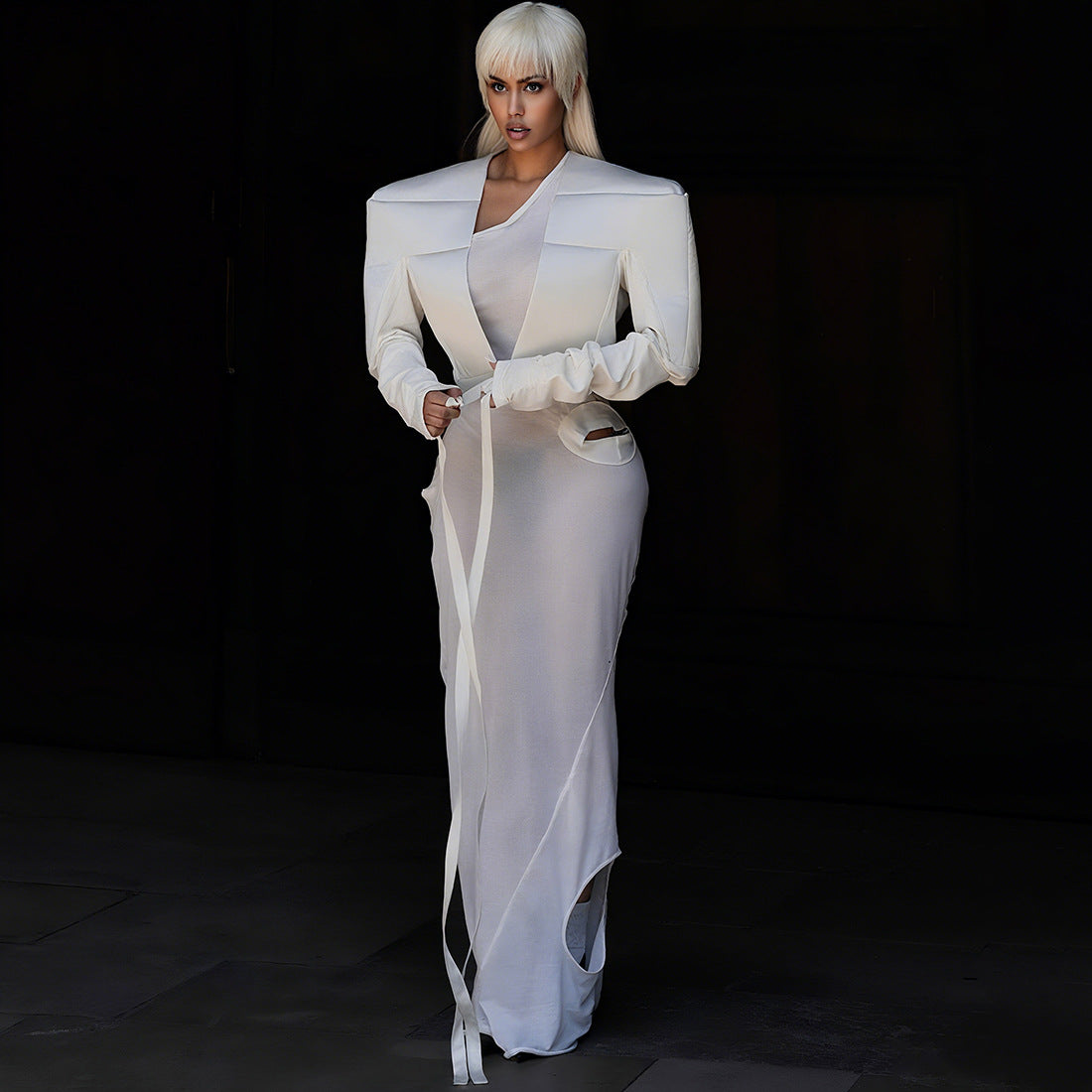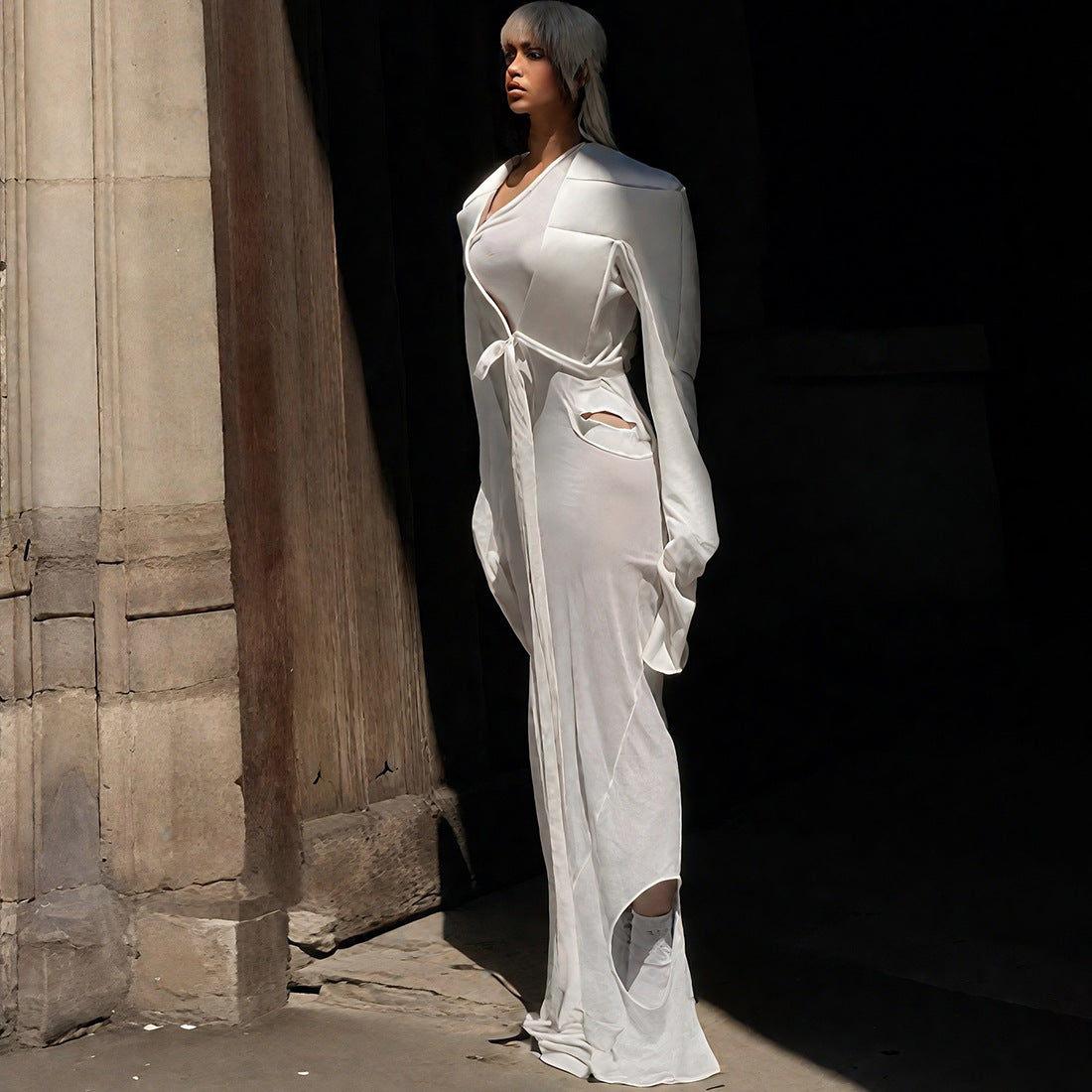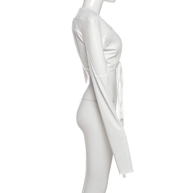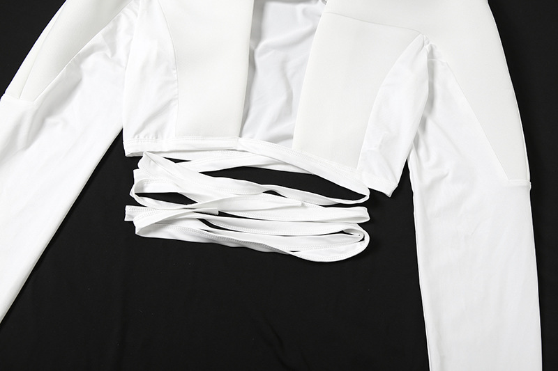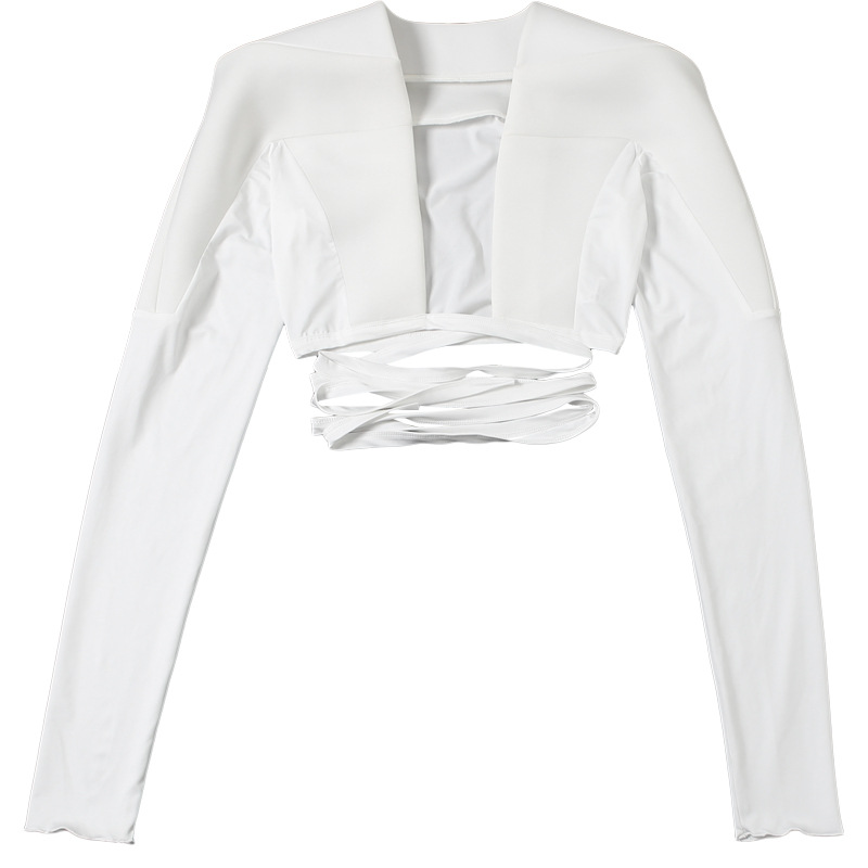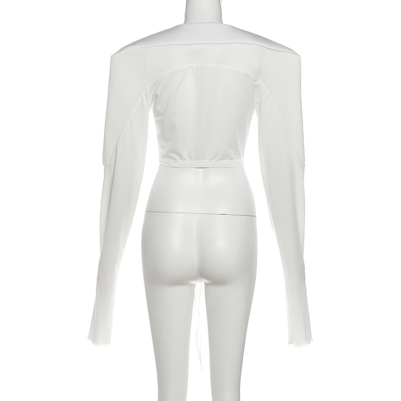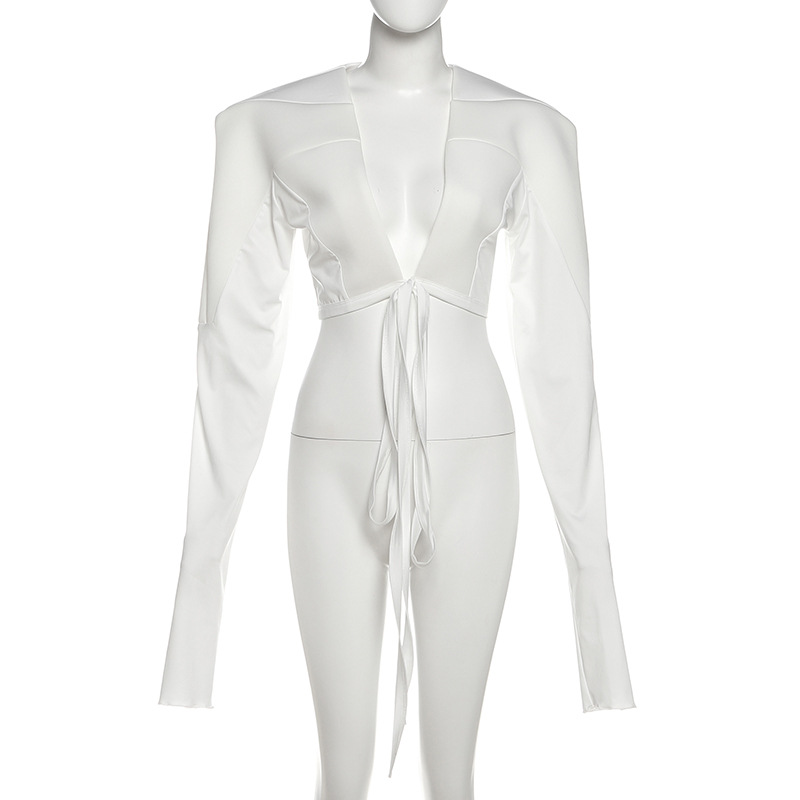 Women Clothing Personality Street Wide Shoulder Long Sleeve V neck Lace up Solid Color Short Coat