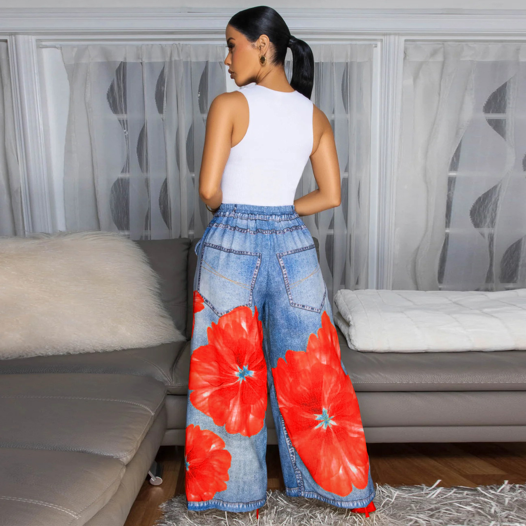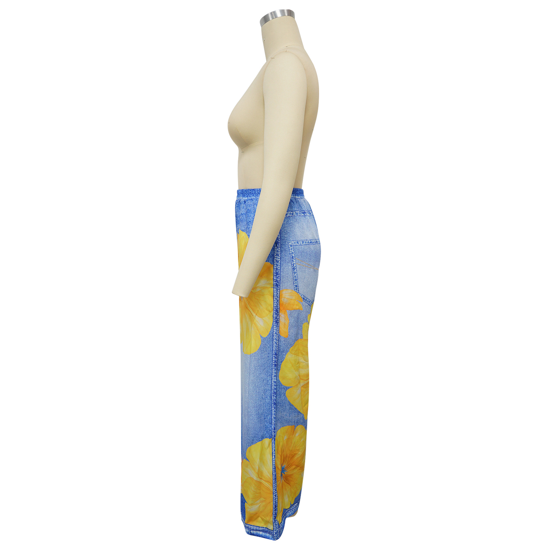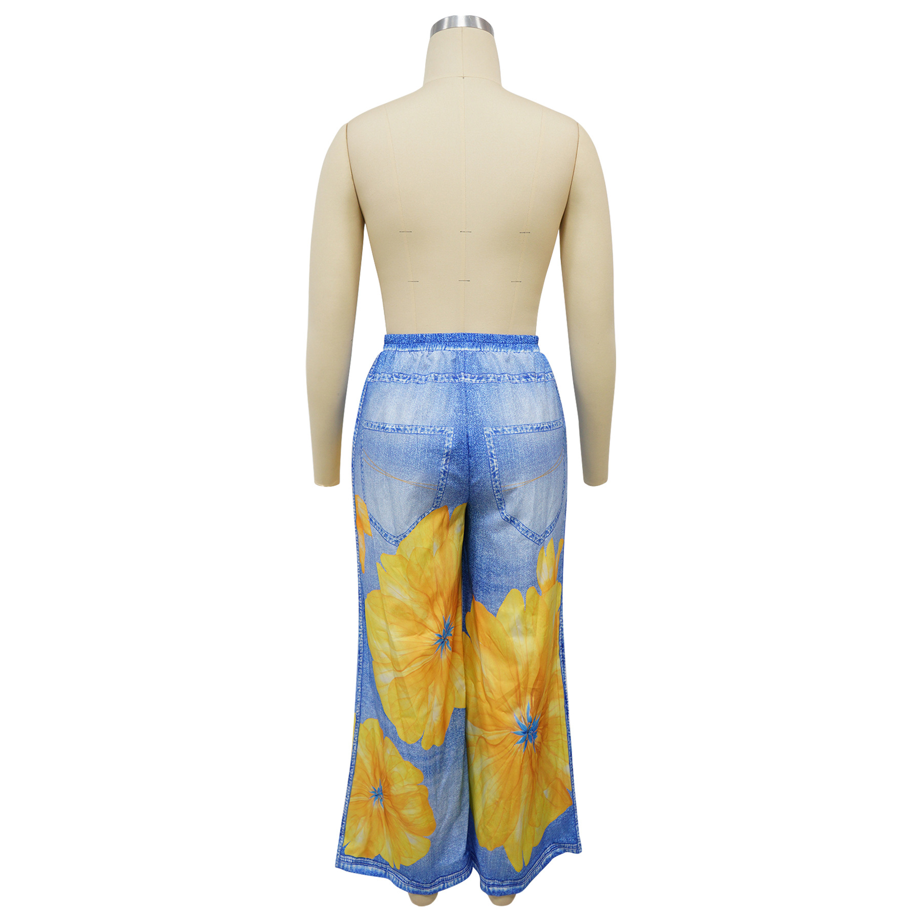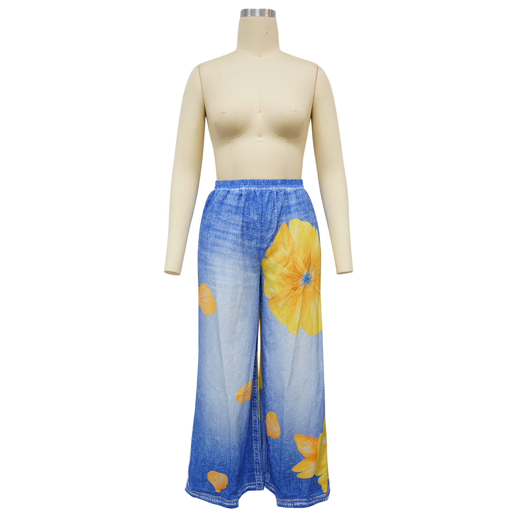 Women Clothing Russia Europe Printed Wide Leg Pants Casual Women Pants