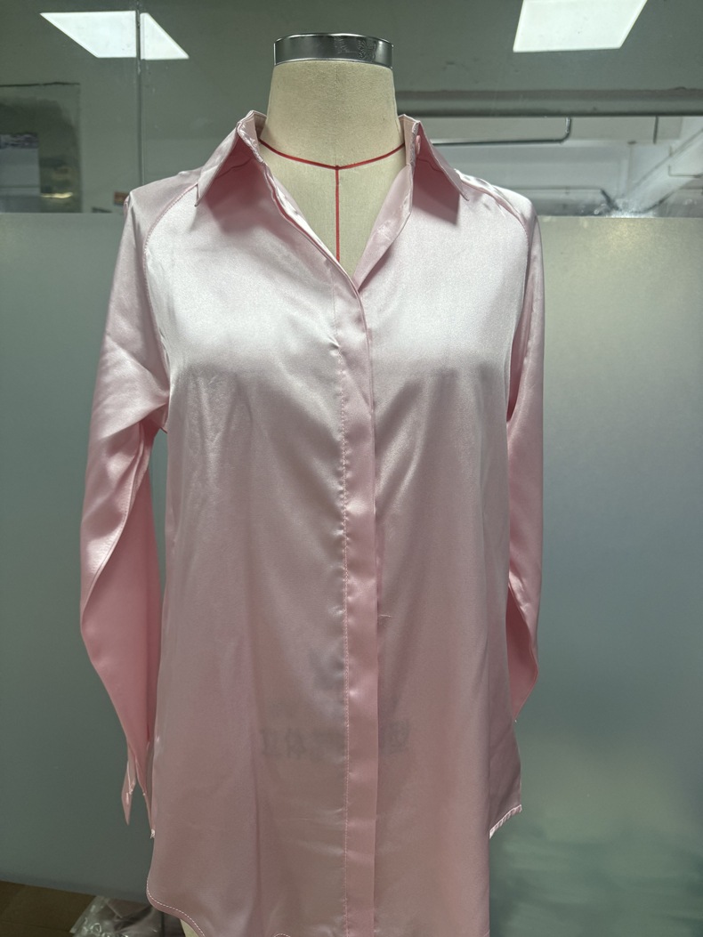 Women Clothing Satin Shirt Women Satin Silk like Long Sleeved Shirt Women Clothing