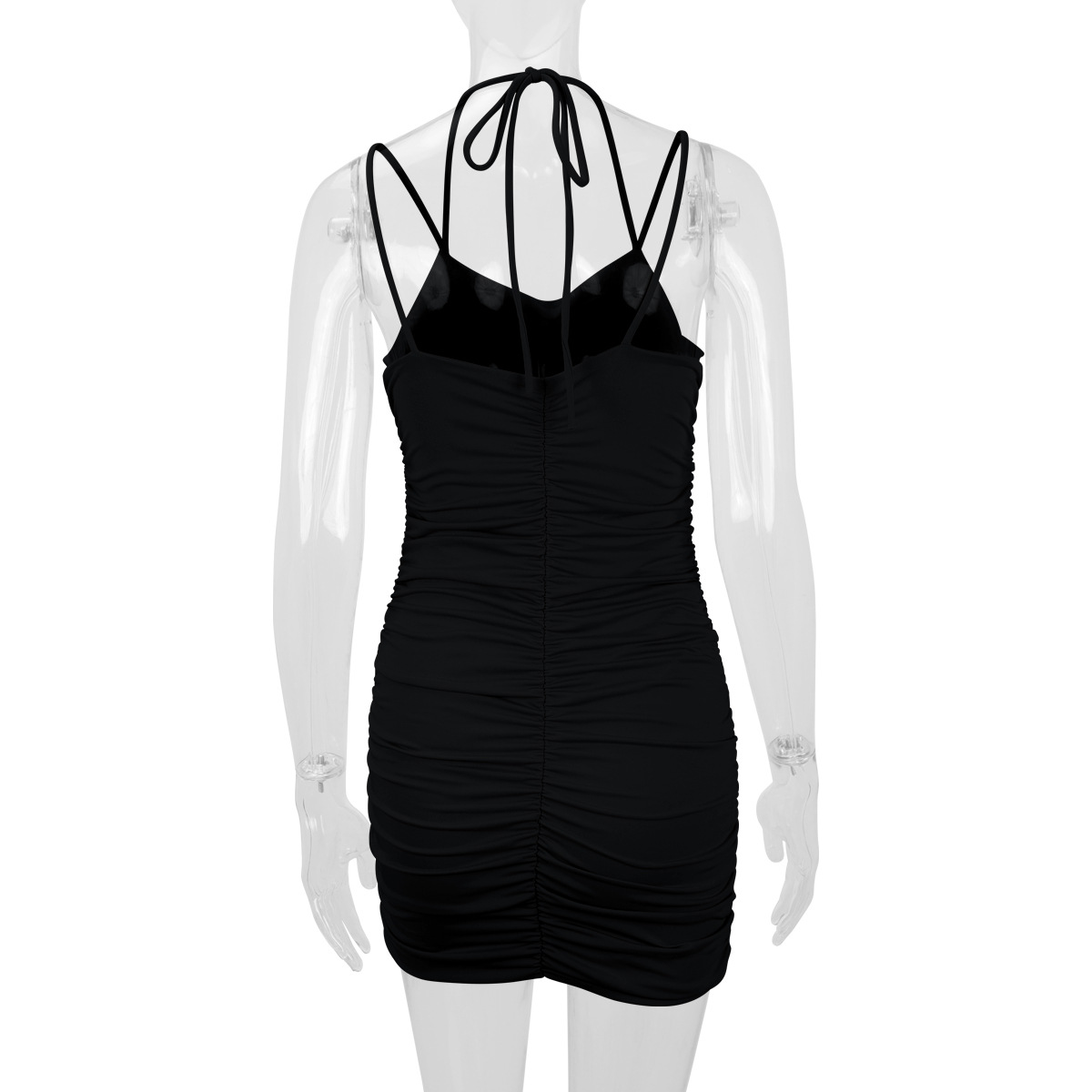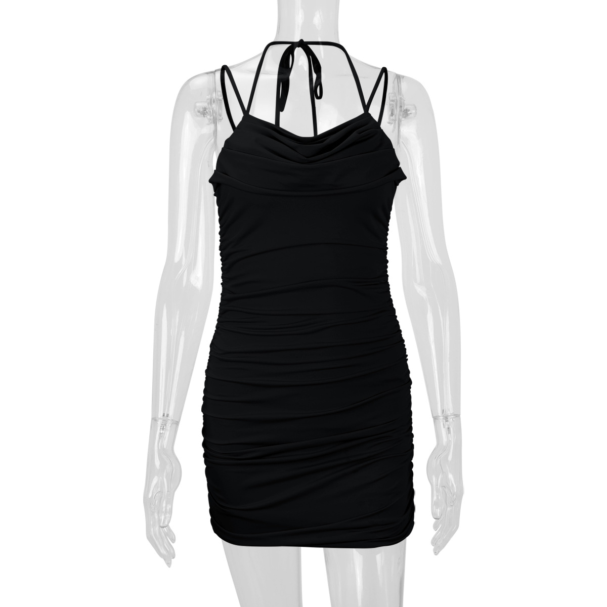 Women Clothing Sexy Double Shoulder Strap Pleated Slim Sexy Dress