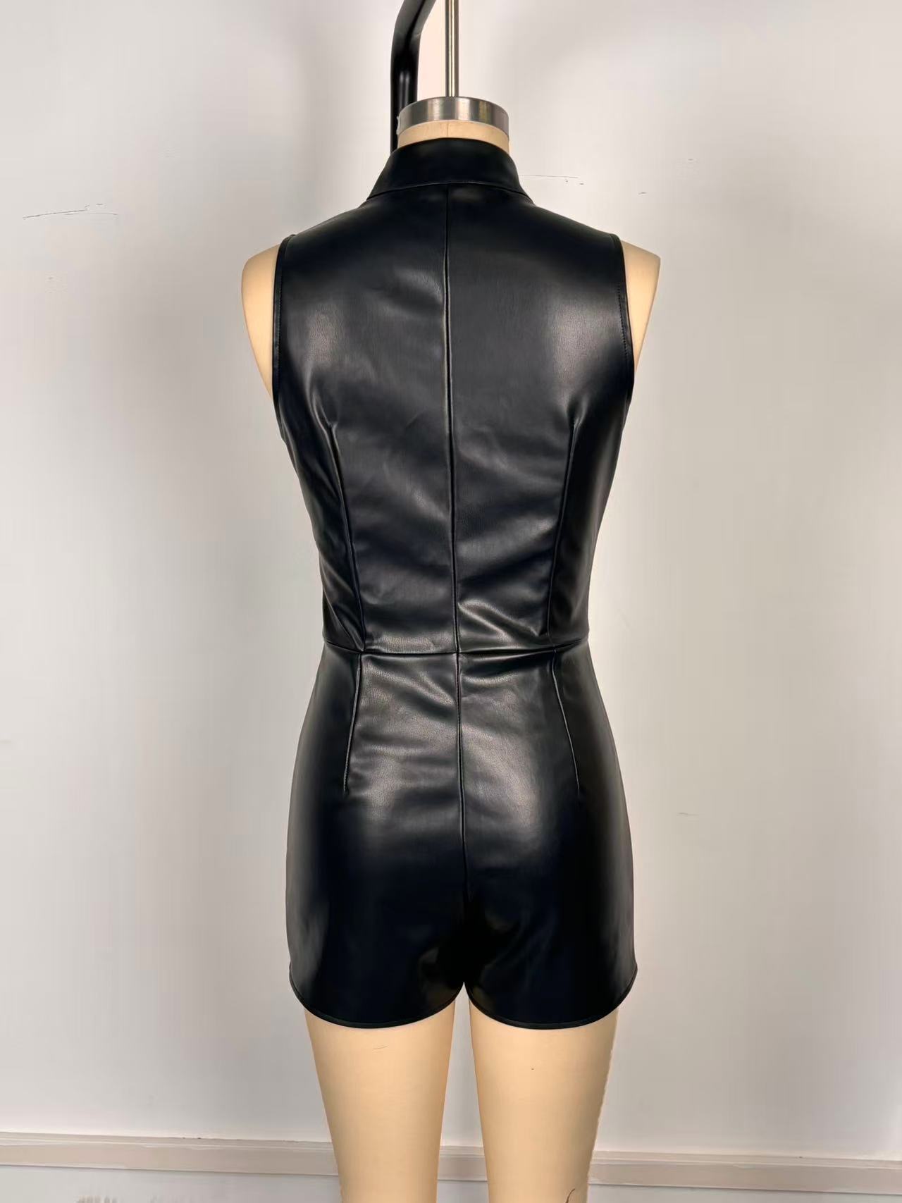 Women Clothing Sleeveless Sexy Leather Jumpsuit Nightclub Close Fitting Jumpsuit