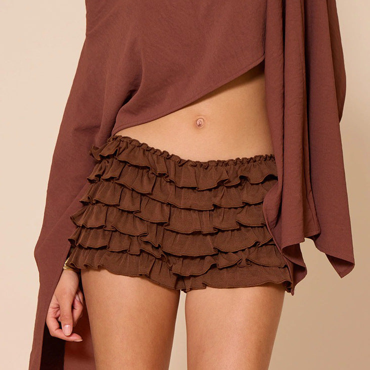 Women Clothing Solid Color Frill Wavy Casual Lantern Dress Short Skirt Culottes