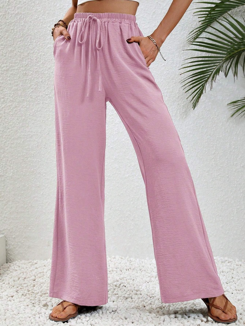 Women Clothing Spring Summer Solid Color Mop Wide Leg Pants Casual Pants