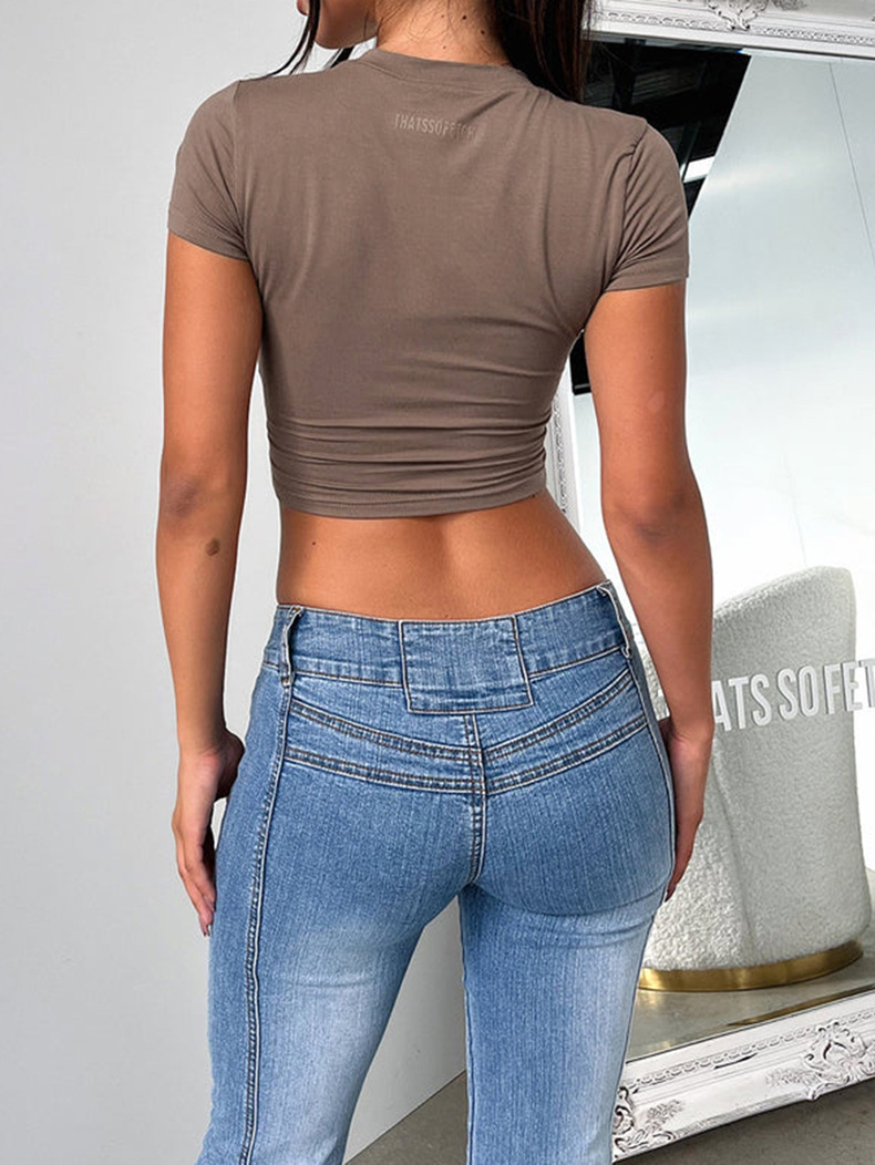 Women Clothing Spring Summer Solid Color Slim Fit Cropped Short Sleeve Top