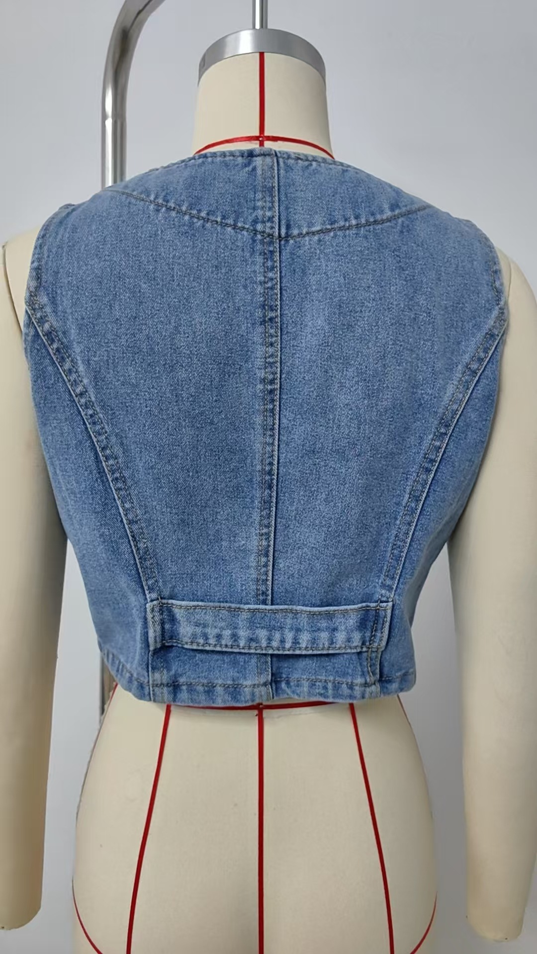 Women Clothing Spring Summer Washing Denim Vest Girls Vest Top