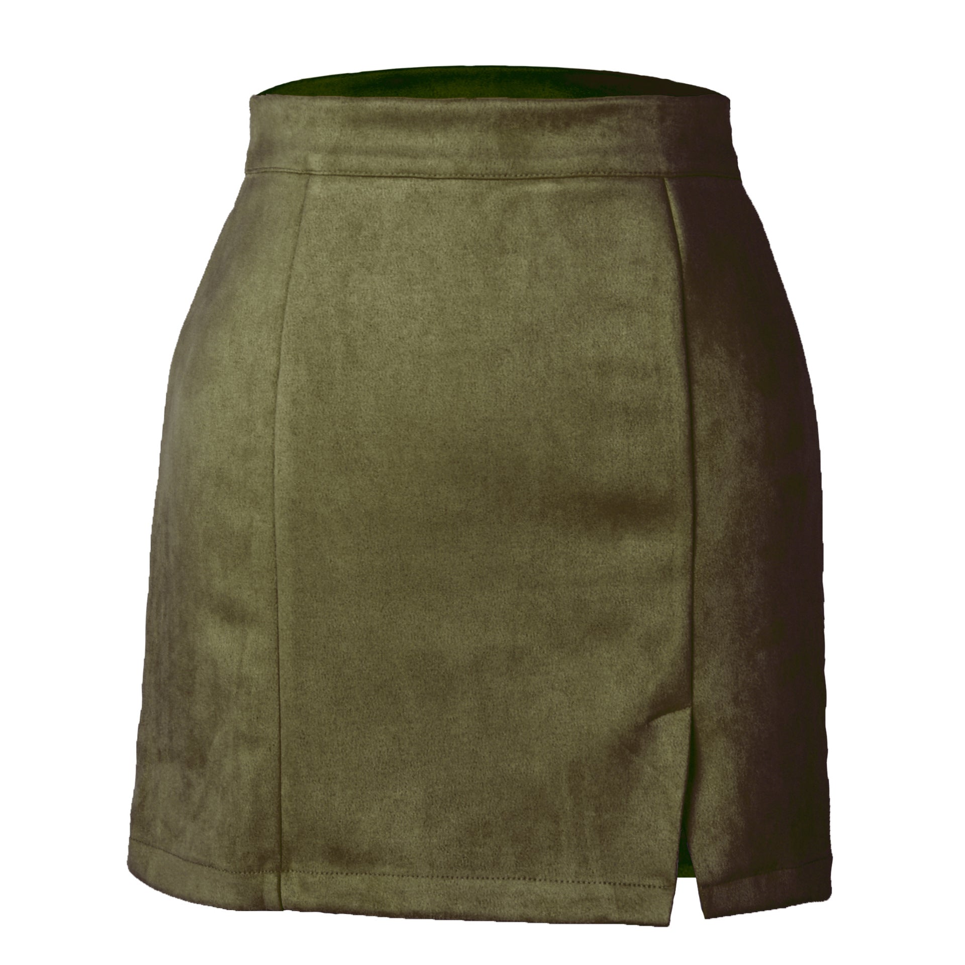 Women Clothing Suede Hip Skirt High Waist Zipper Autumn Winter A line Solid Skirt Women