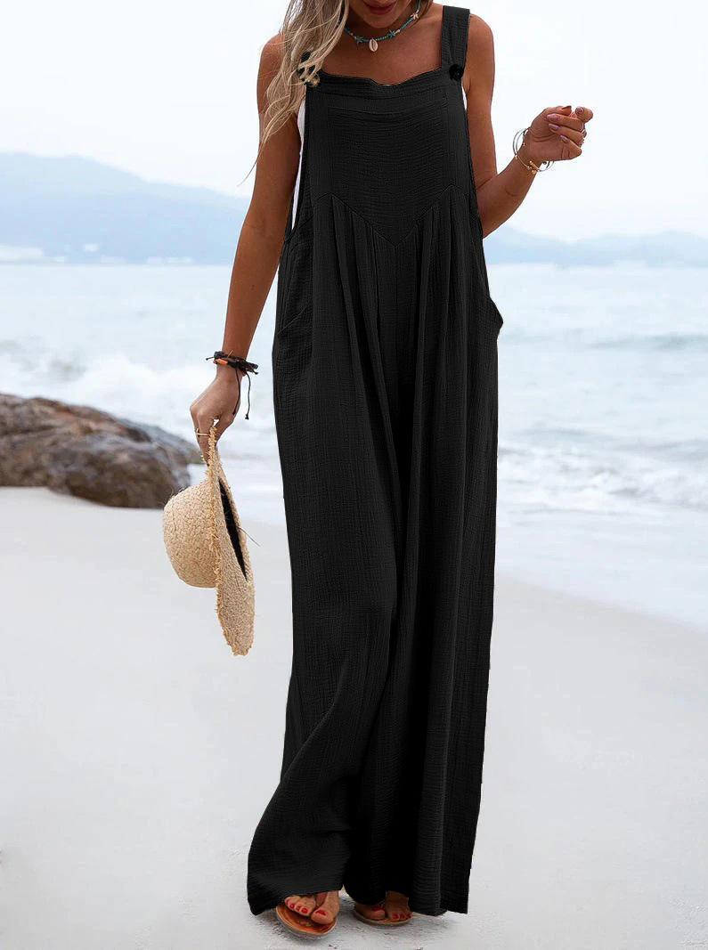 Women Clothing Summer Jumpsuit Ethnic Solid Color Wide Leg Jumpsuit