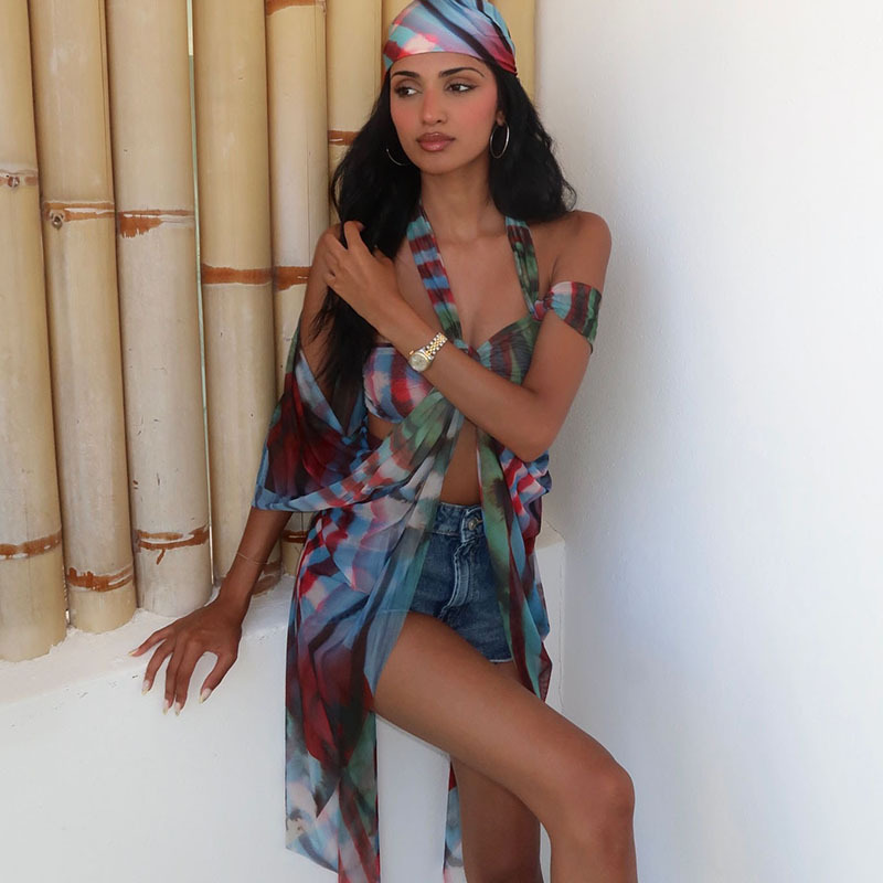 Women Clothing Summer Sexy Backless Print Personalized Halter Irregular Asymmetric Top