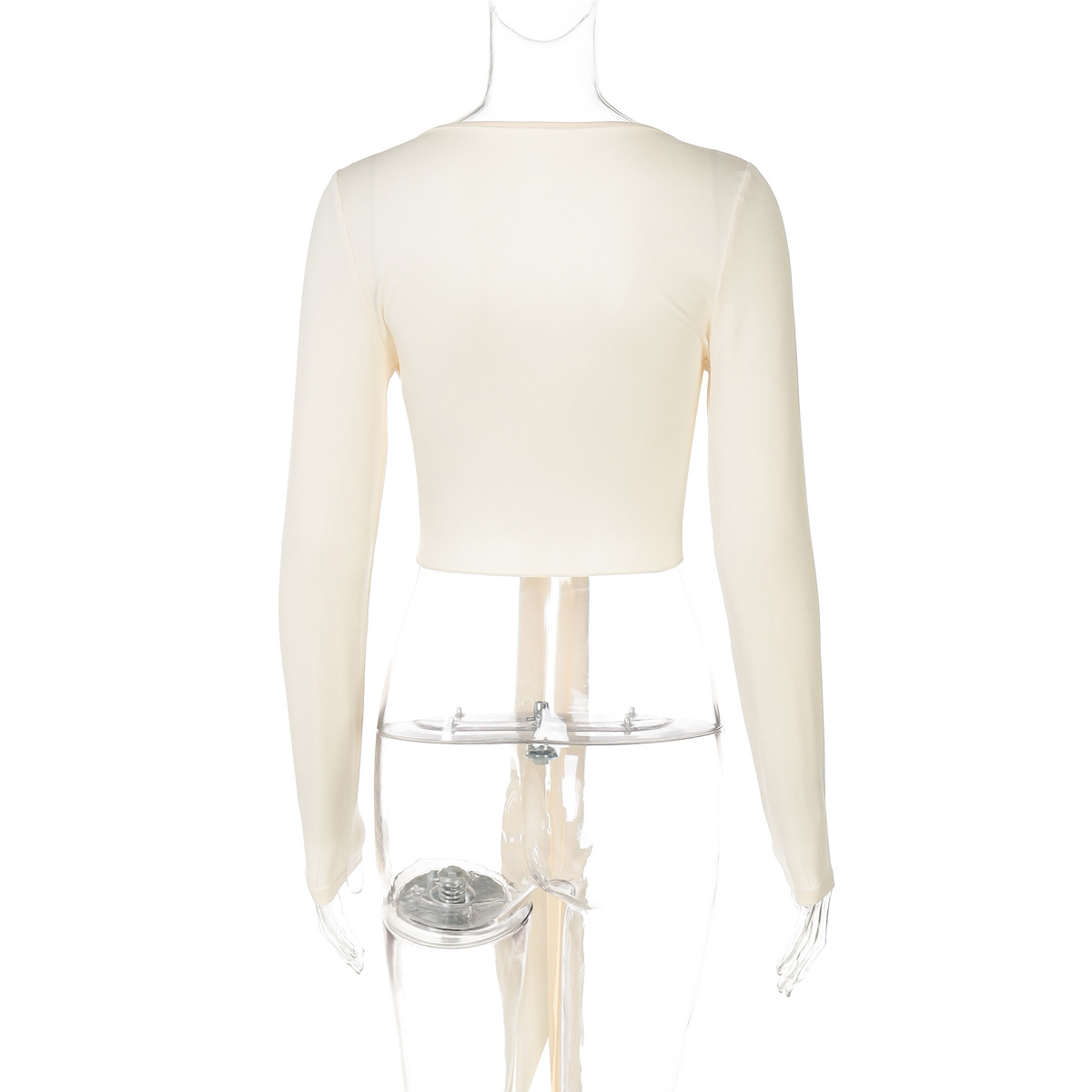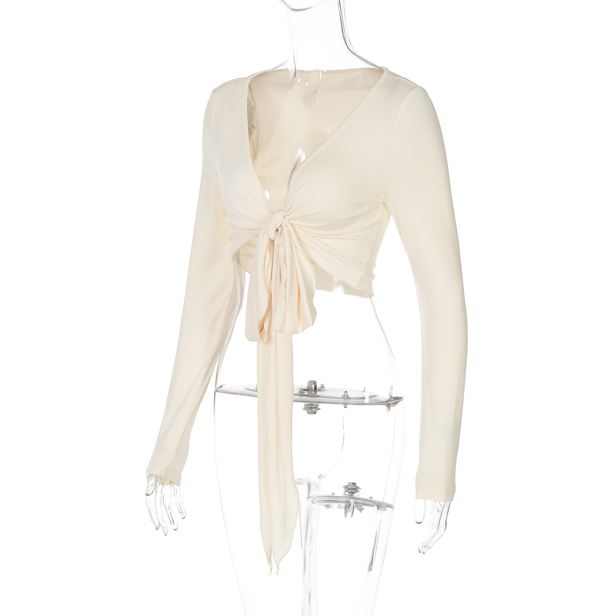 Women Clothing Summer Sexy Deep V Plunge neck Solid Color Cropped Strap Long Sleeved T shirt Top