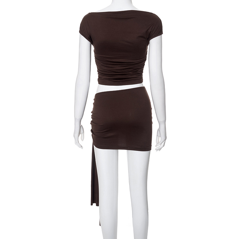 Women Clothing Summer Solid Color Casual Sleeveless Single Shoulder Suspender Top Slim Fit Skirt Set