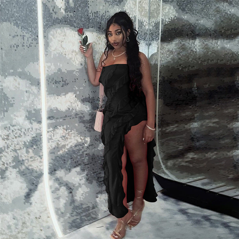 Women Clothing Summer Women Clothing Tube Top Sexy Backless Slit Temperamental Dress