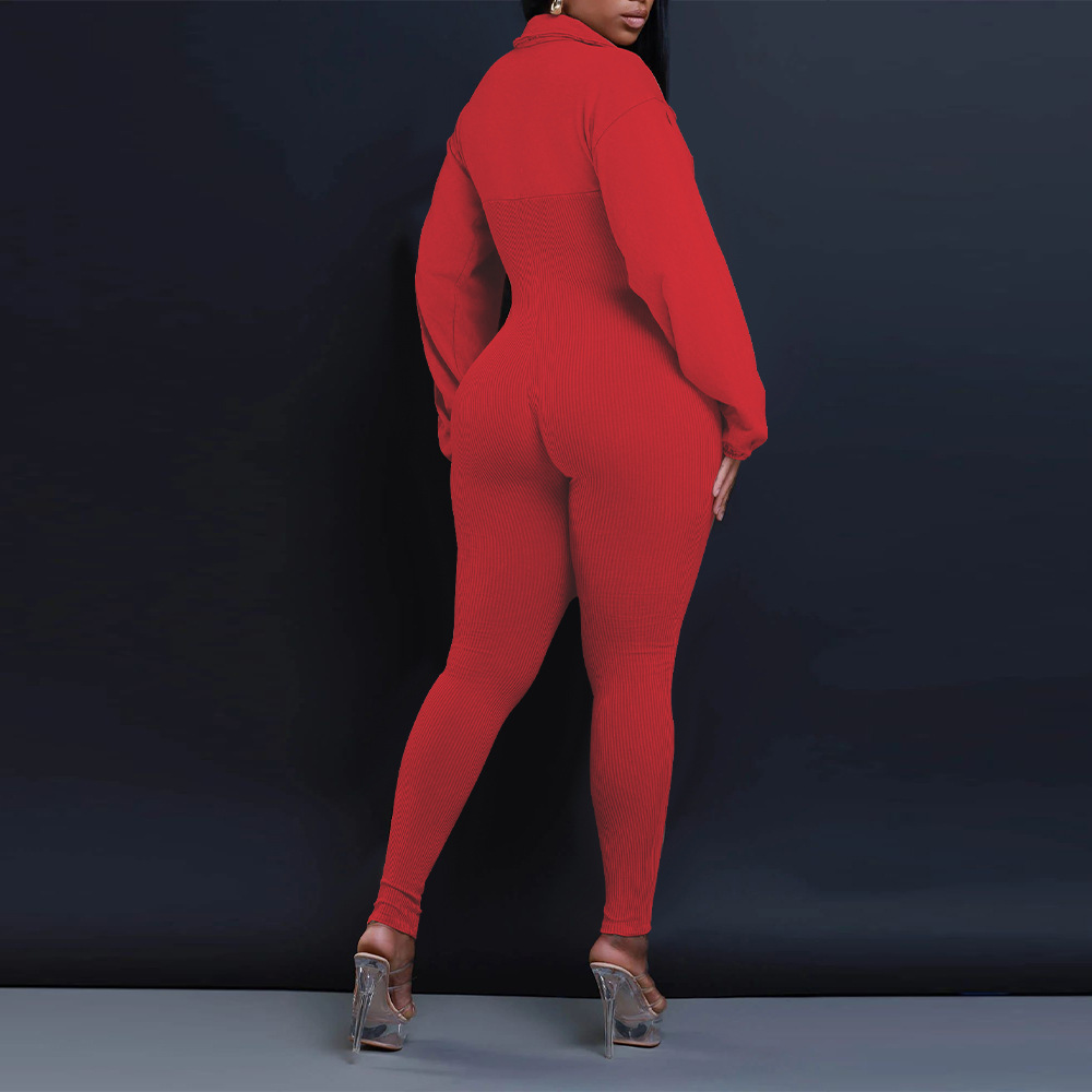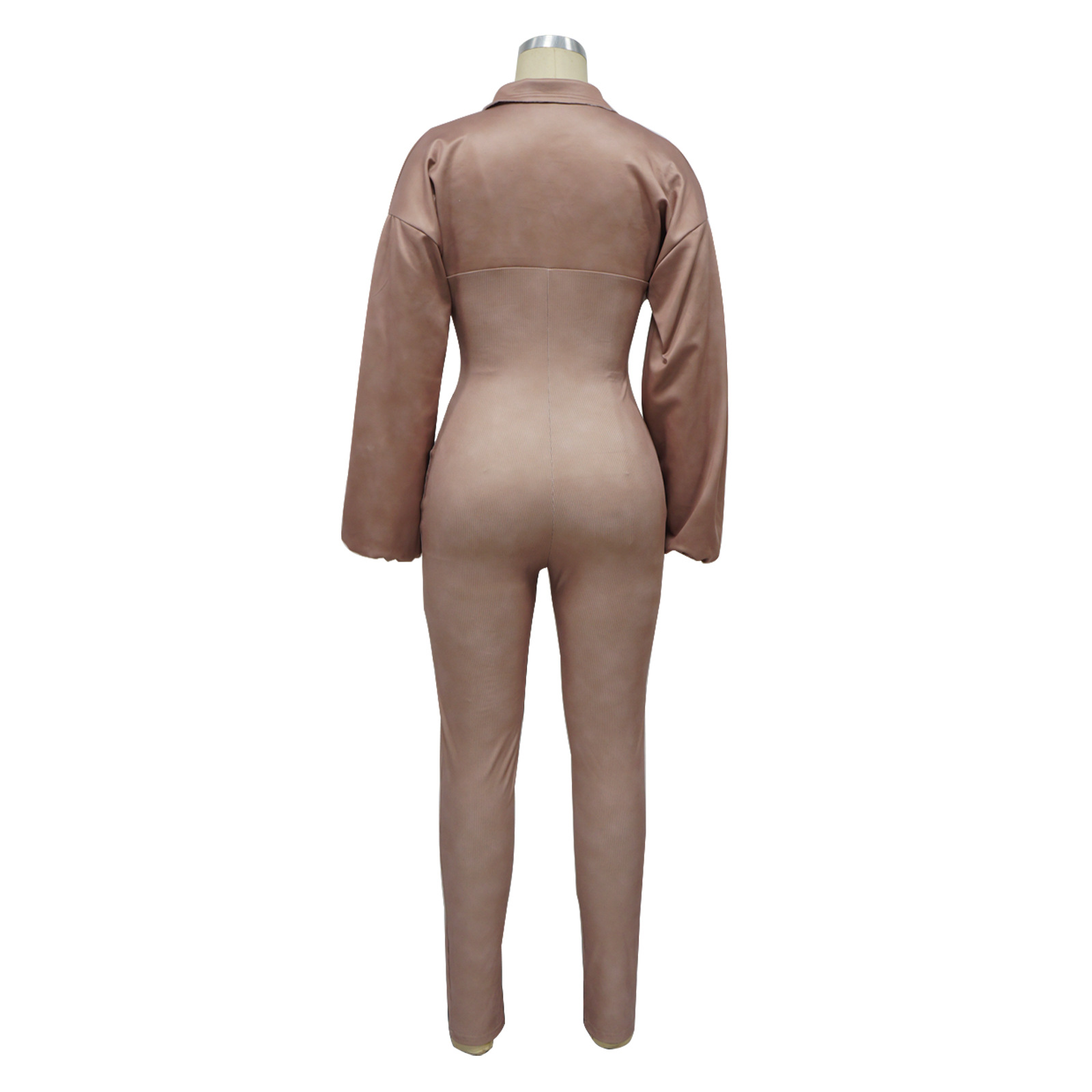 Women Clothing V Neck Gigot Sleeve Tight Stitching Jumpsuit Autumn Winter