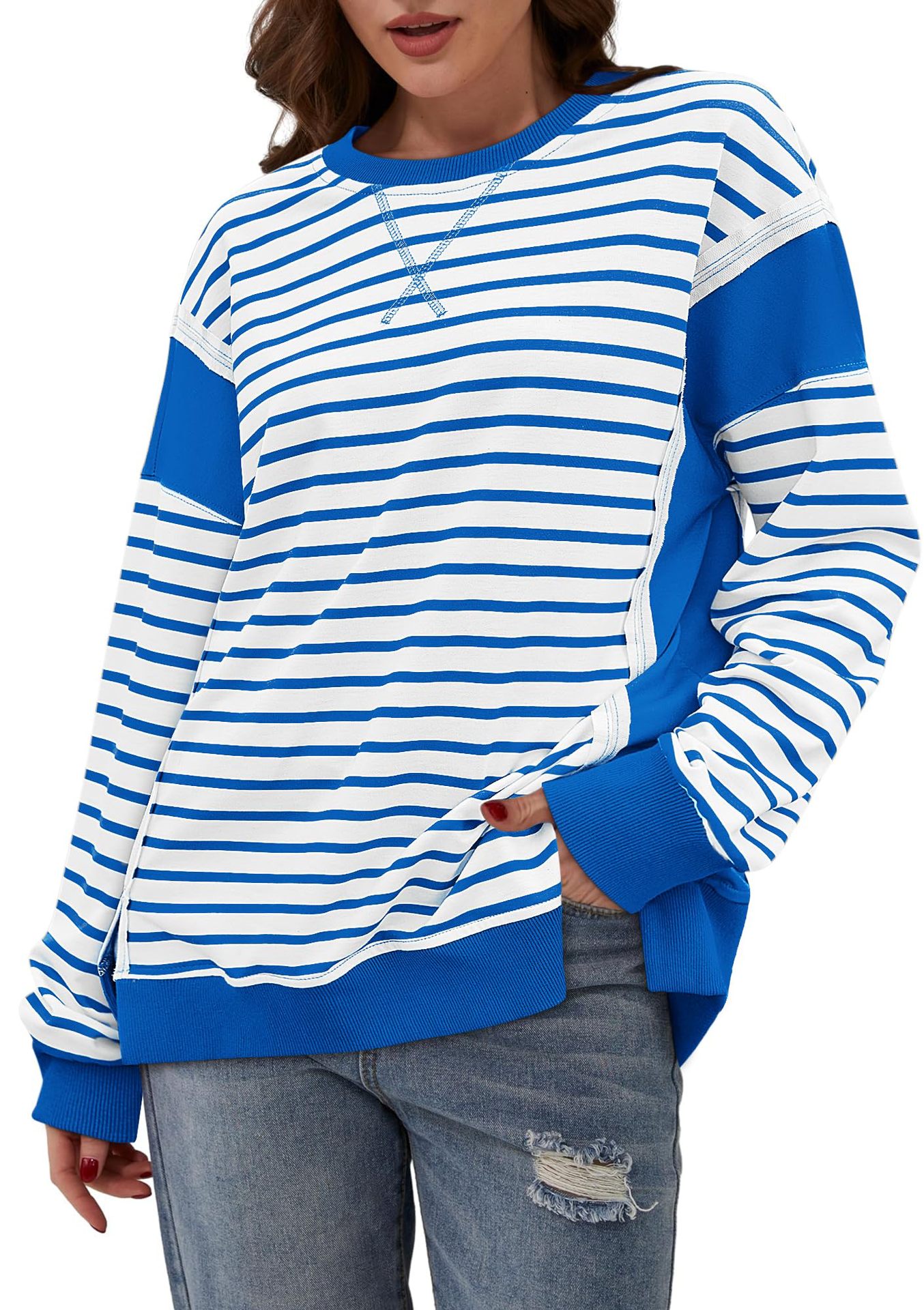 Women Clothing Women Multicolor Hoodie Striped Color Contrast Long Sleeve T Shirt