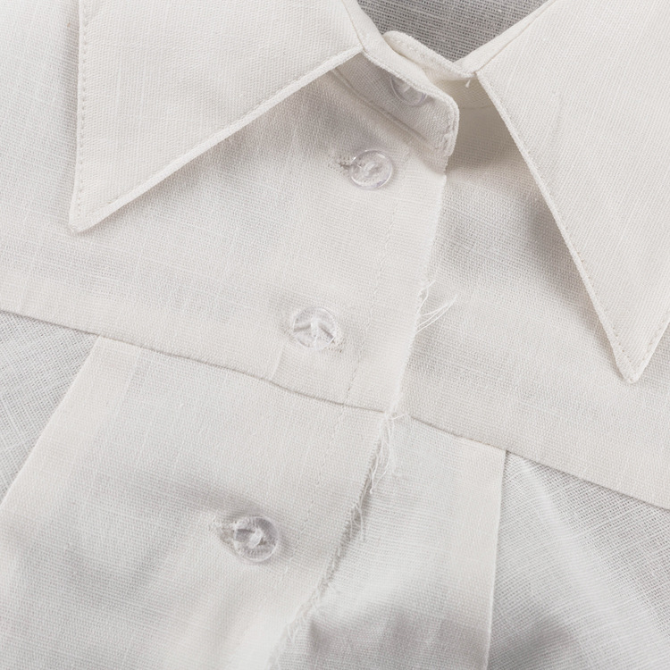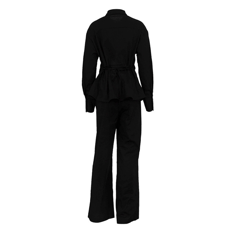 Women Collared Long Sleeves Cropped Design White Shirt Hollow Out Cutout out Tied Wide Leg Pants Two Piece Set
