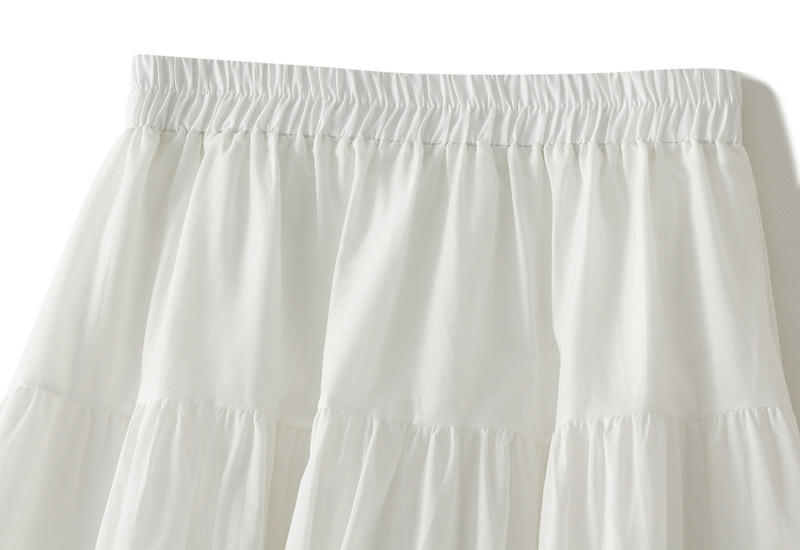 Women Cotton White Skirt Summer Elegant A line Skirt Lace Trim
