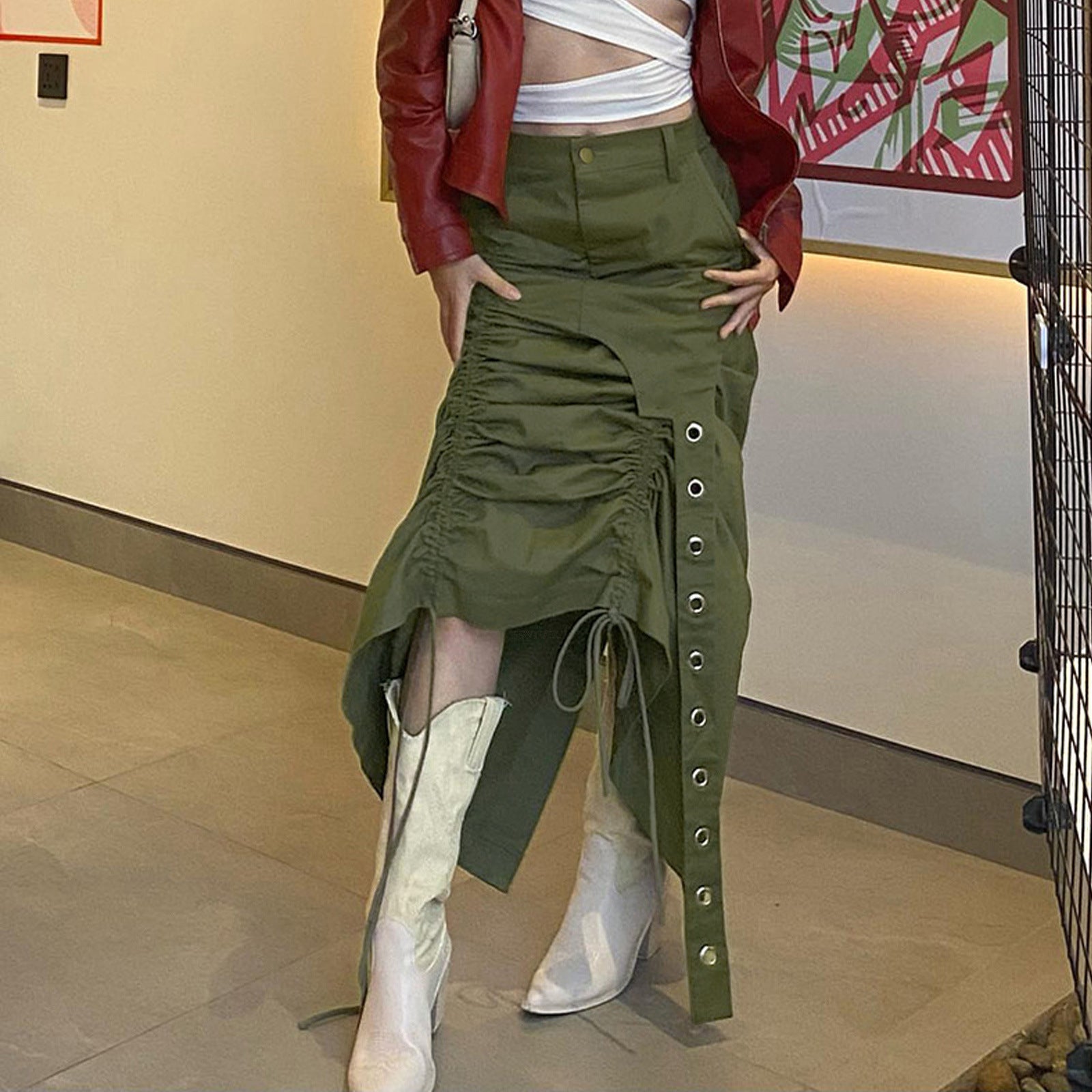 Women Drawstring Skirt Millennium Side Pleated Tie Irregular Asymmetric Skirt