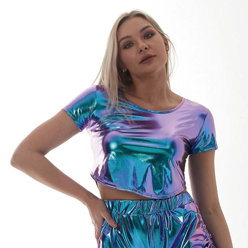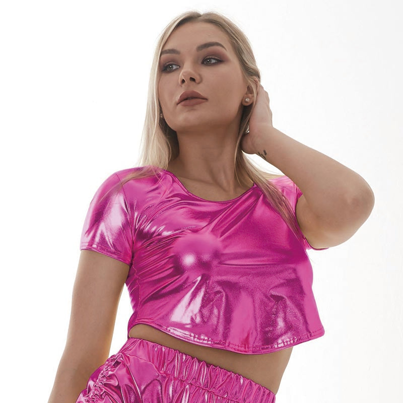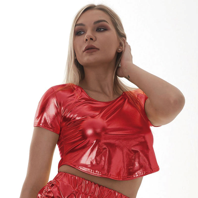 Women Nightclub Stage Wear Short Sleeved Cropped Round Neck Top Performance Wear Sexy Clothes