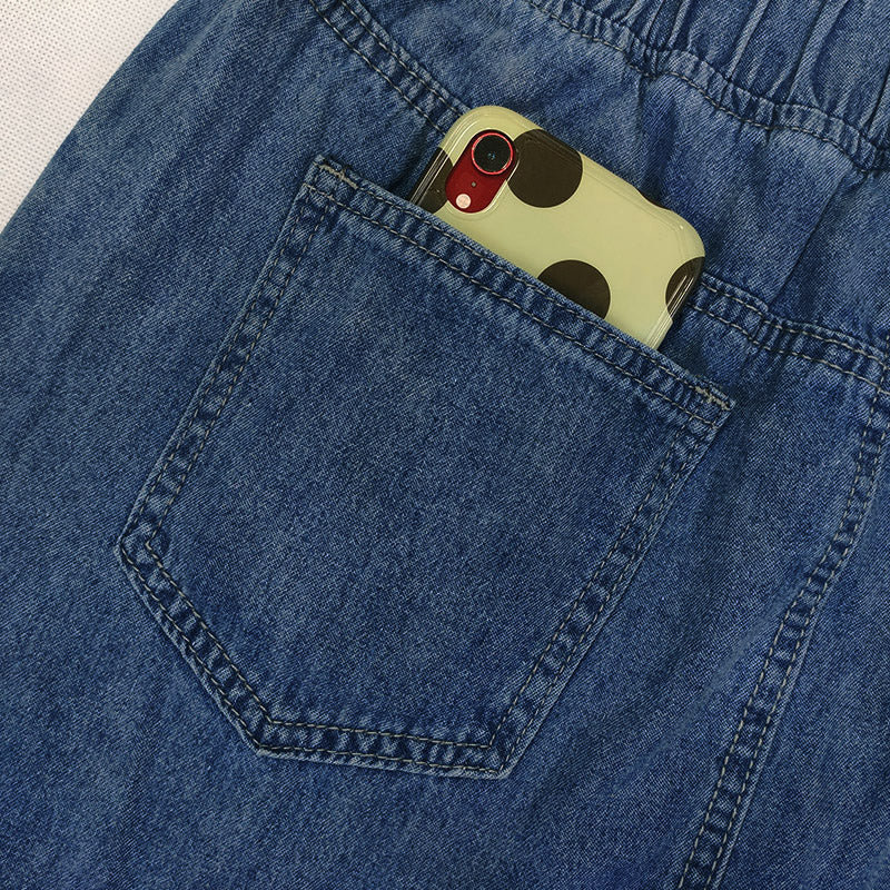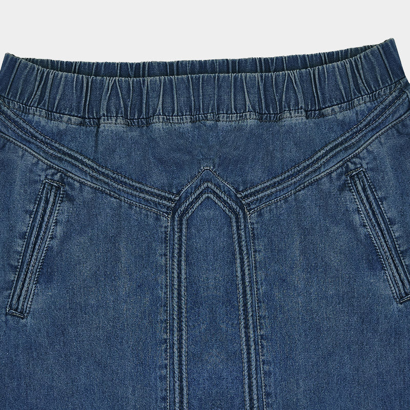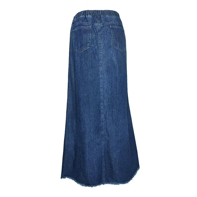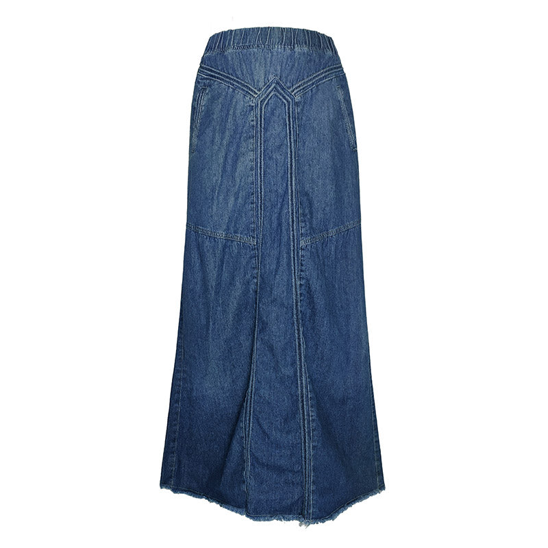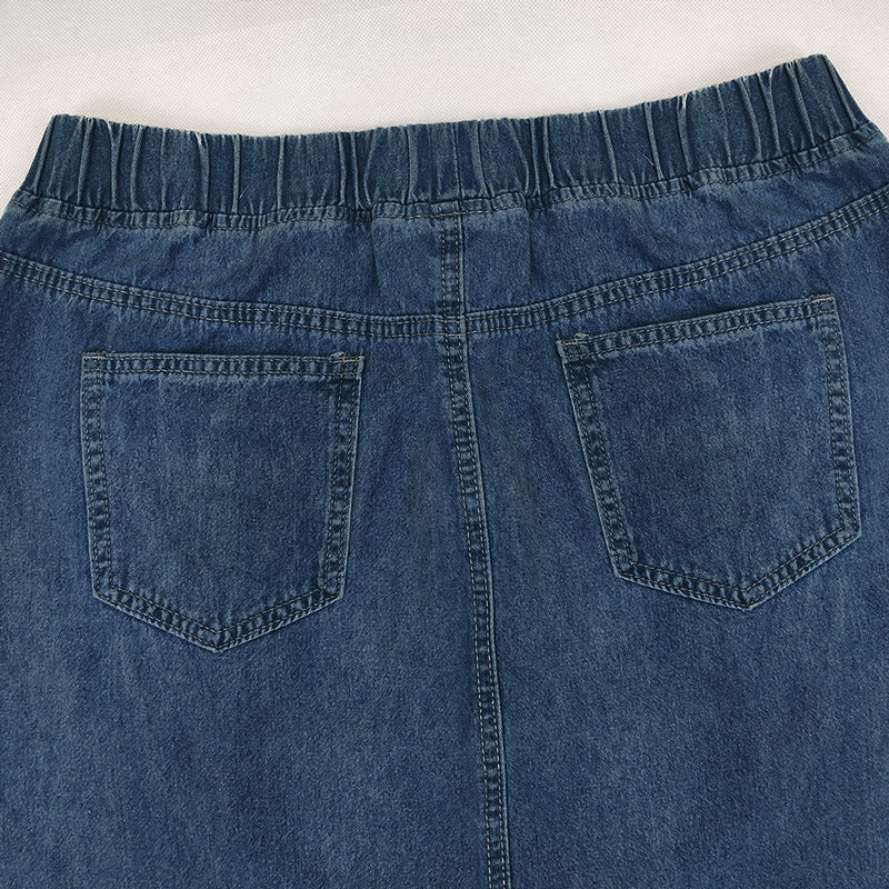 Women pring Summer Denim A Skirt Binding Tape Brushed Elastic High Waist Simple All Match Long Skirt