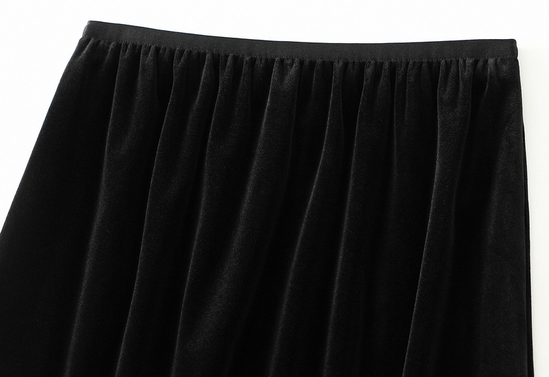Women Retro Design Stitching Mesh Skirt Autumn A line Velvet Split Straight Skirt