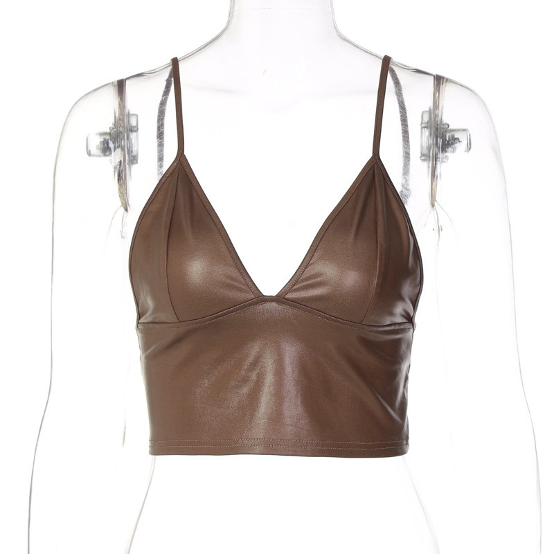 Women Summer Sexy V neck Slim Short Crop Top Spaghetti Strap Tops