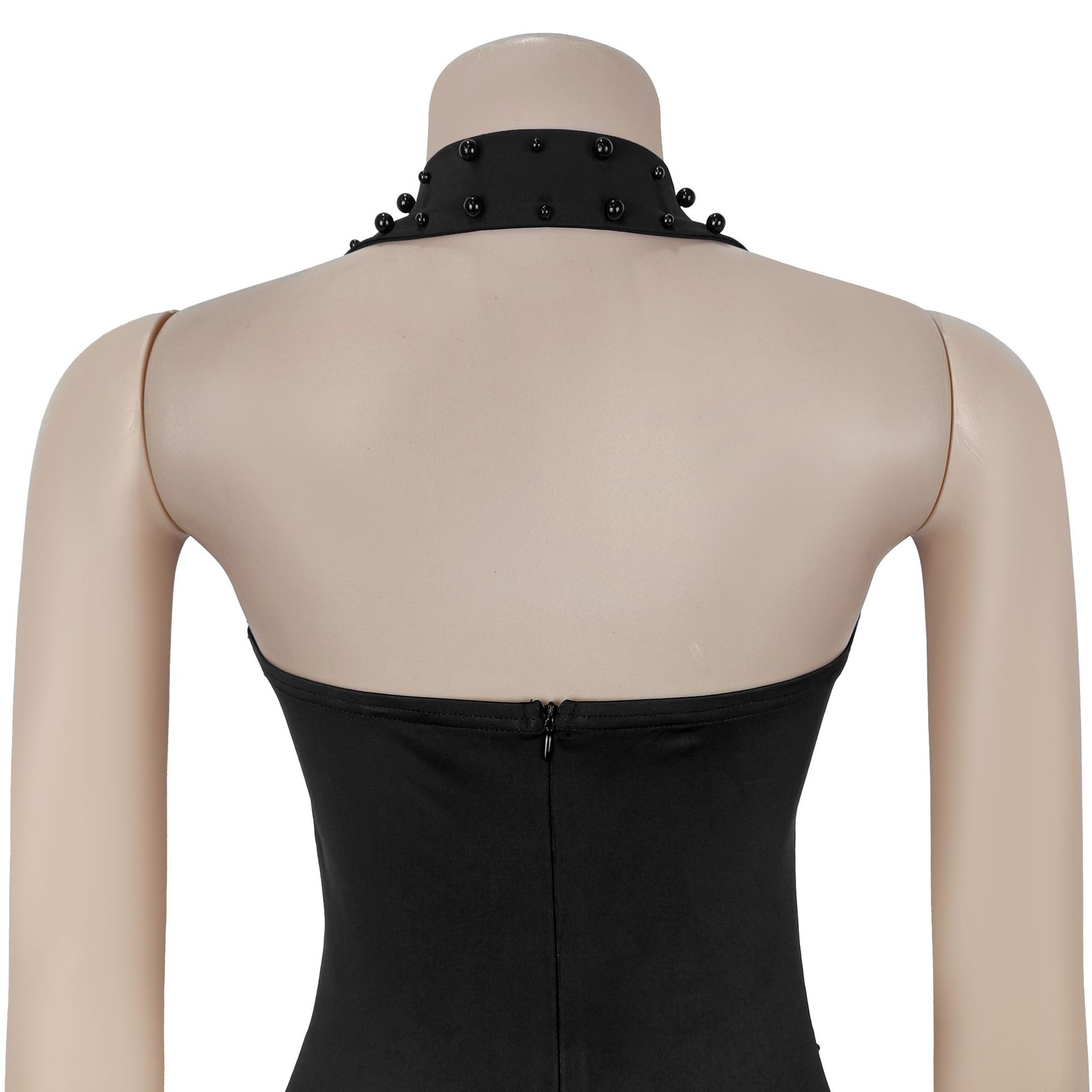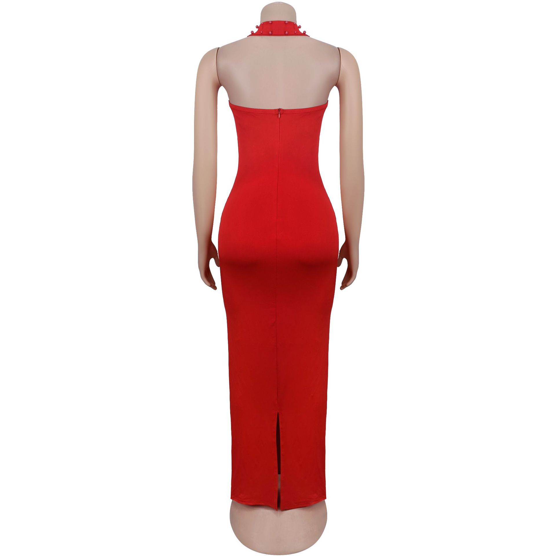 Women Wear Halter Rhinestone Foam Beads Slim Fit Sheath Dress