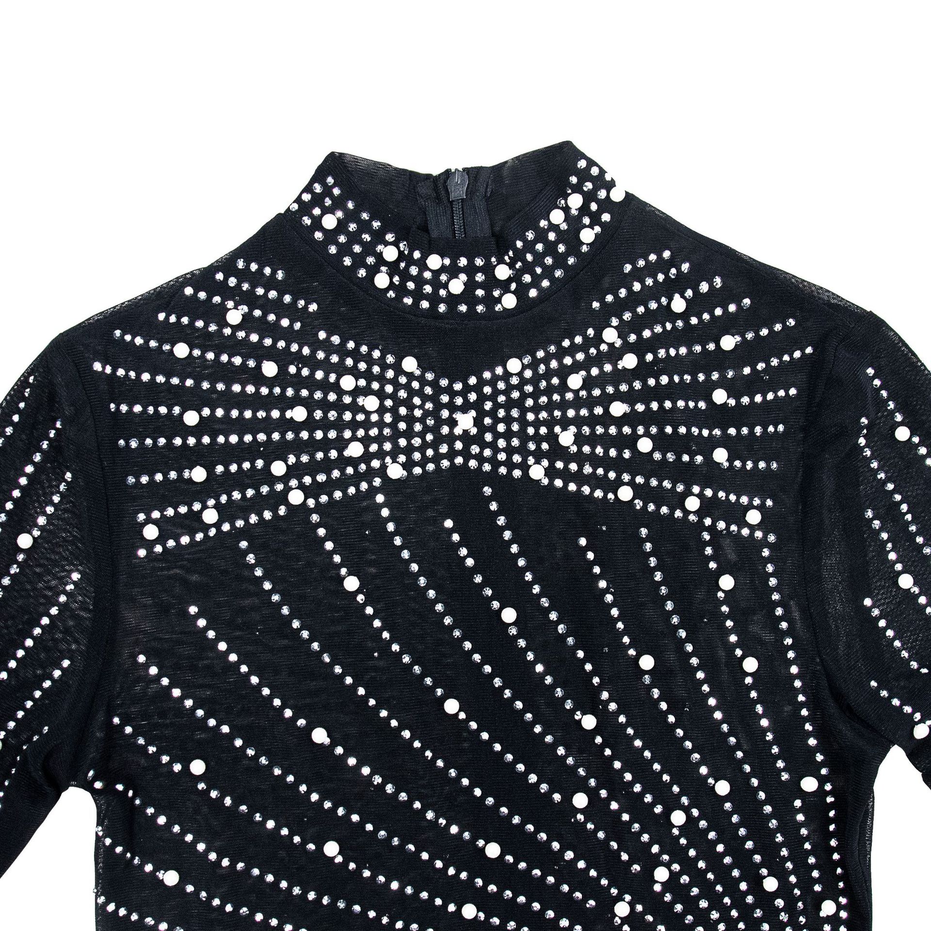 Women Wear Mesh See Through Drilling Long Sleeve Lining Two Piece Set