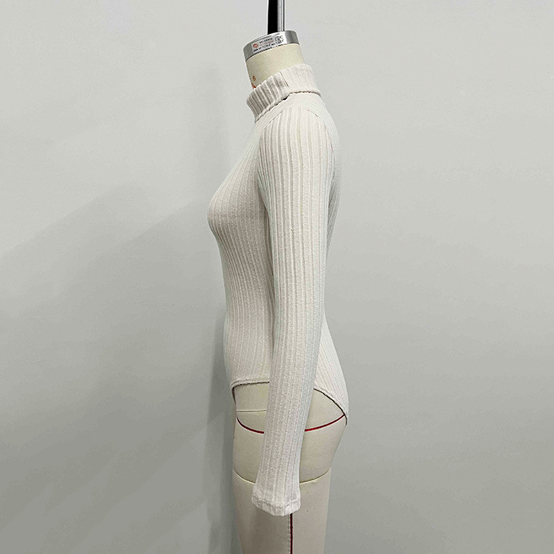 Women Wear Source Knitted Long Sleeve Turtleneck Slim Fit Jumpsuit Bodysuit